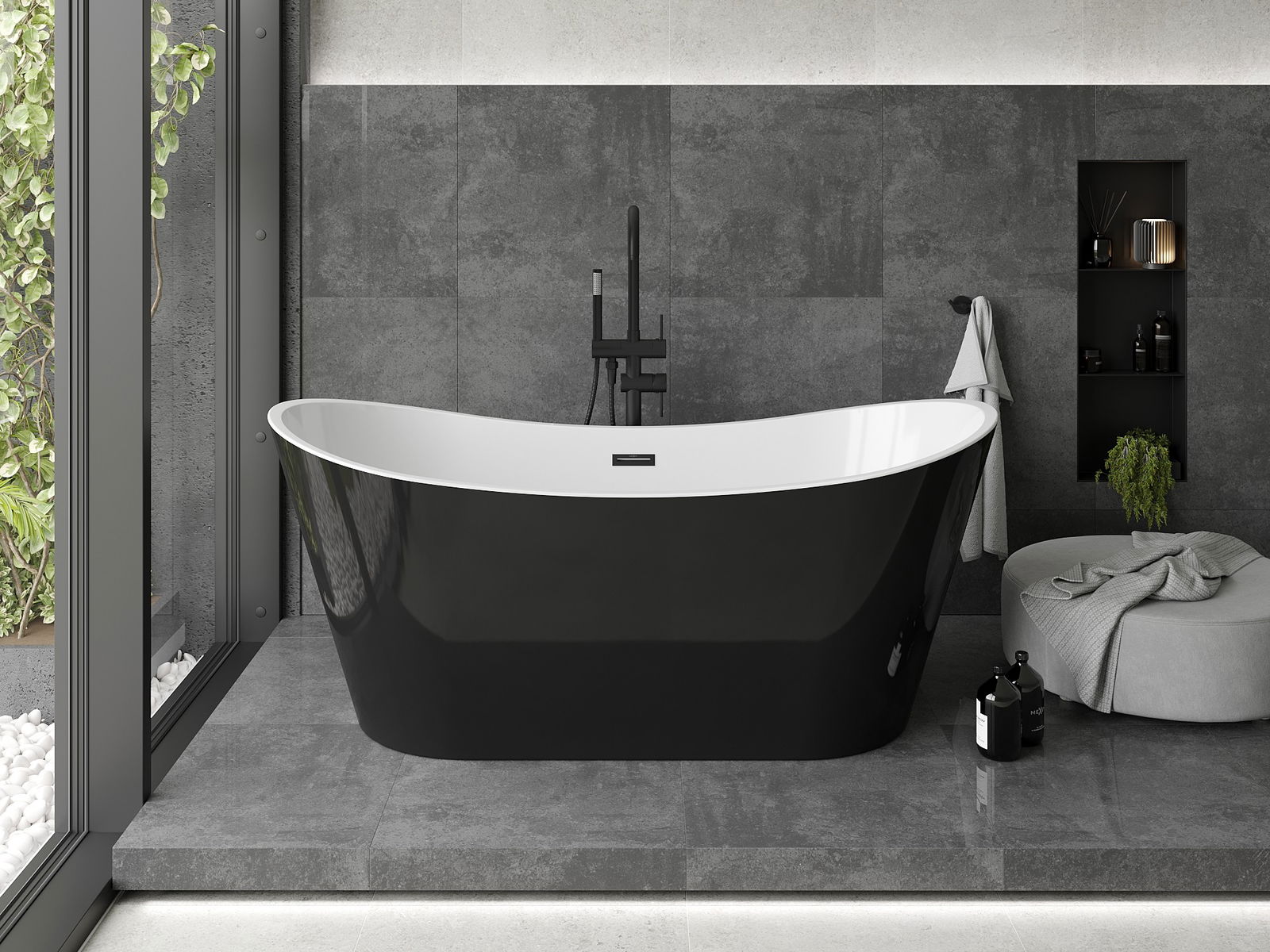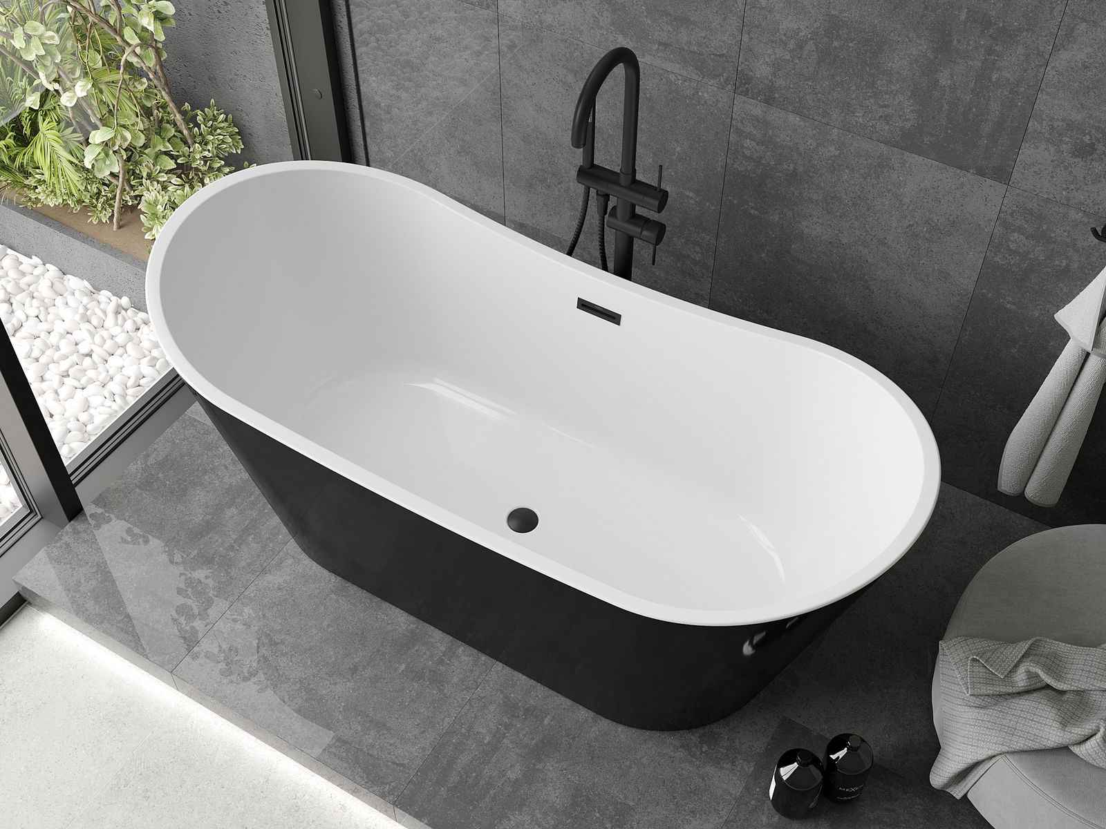 Mexen Montana baignoire autoportante 150 x 75 cm, blanche/noire, trop-plein noir - 52011507575-70