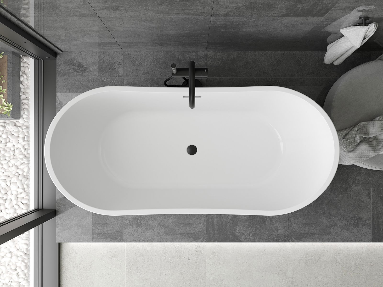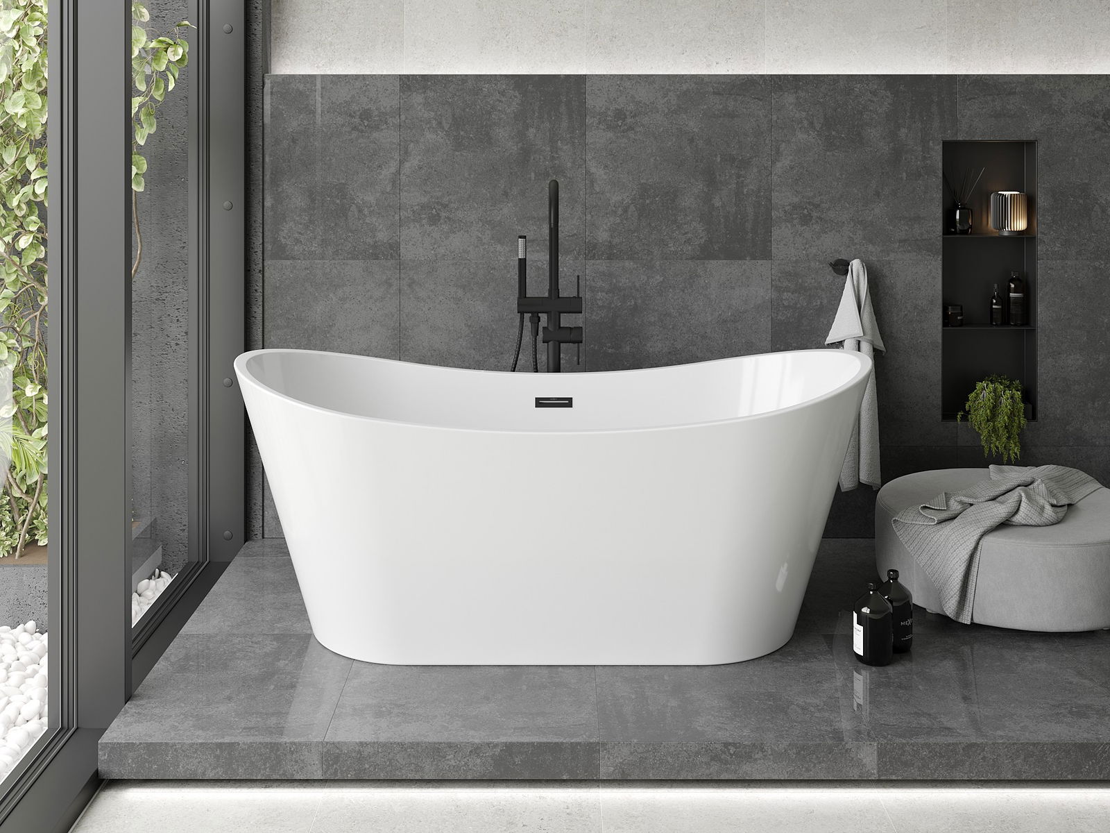 Mexen Montana baignoire autoportante 170 x 80 cm, blanche, trop-plein noir - 52011708000-70