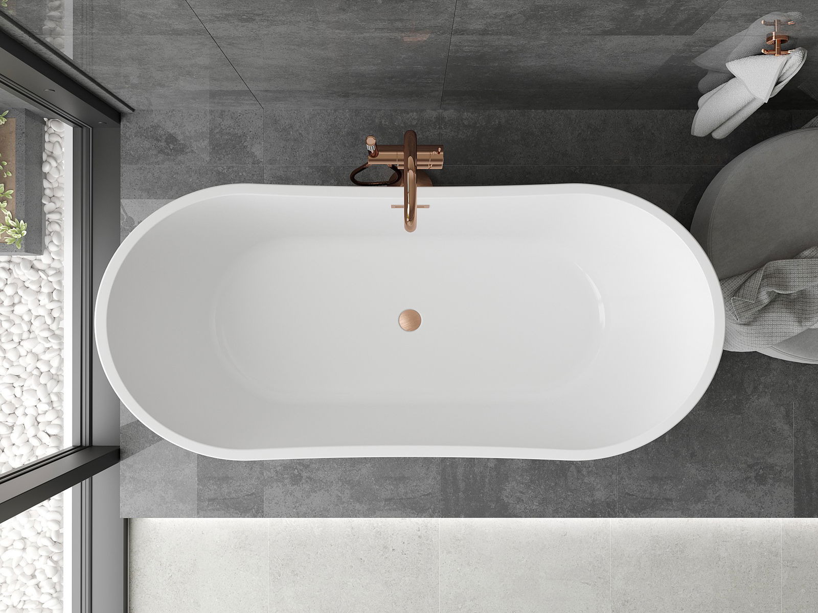Mexen Montana baignoire autoportante 170 x 80 cm, blanche/noire, trop-plein cuivre brossé - 52011708075-65