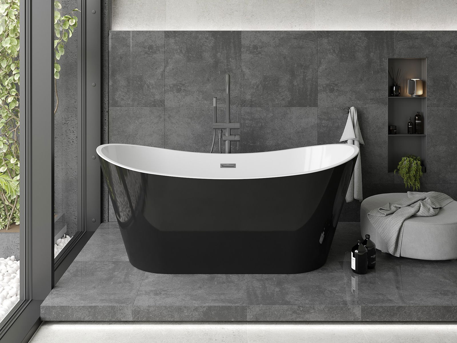 Mexen Montana baignoire autoportante 180 x 80 cm, blanc/noir, trop-plein gun gray brossé - 52011808075-66