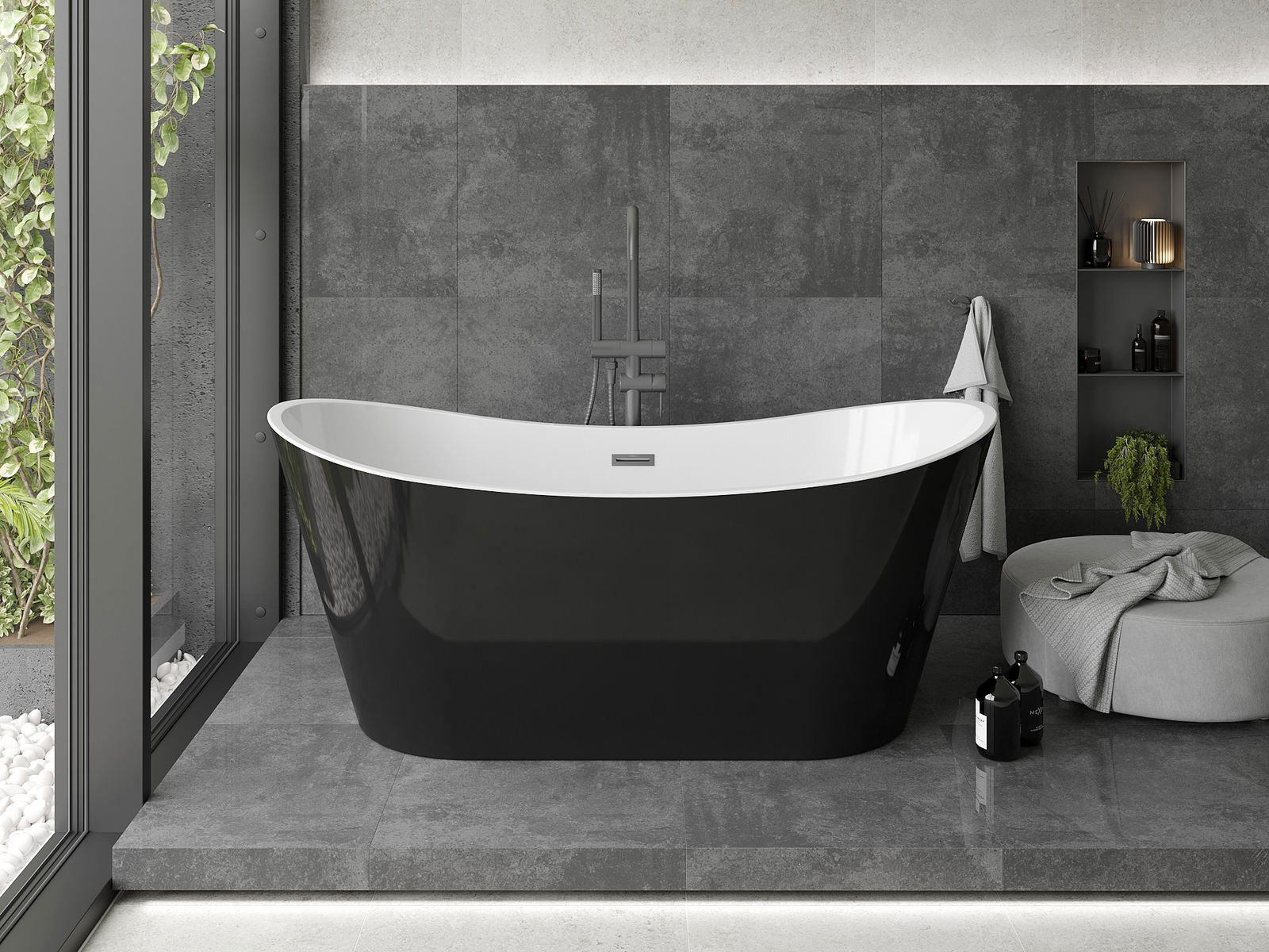 Mexen Montana baignoire autoportante 180 x 80 cm, blanc/noir, trop-plein gun metal - 52011808075-95
