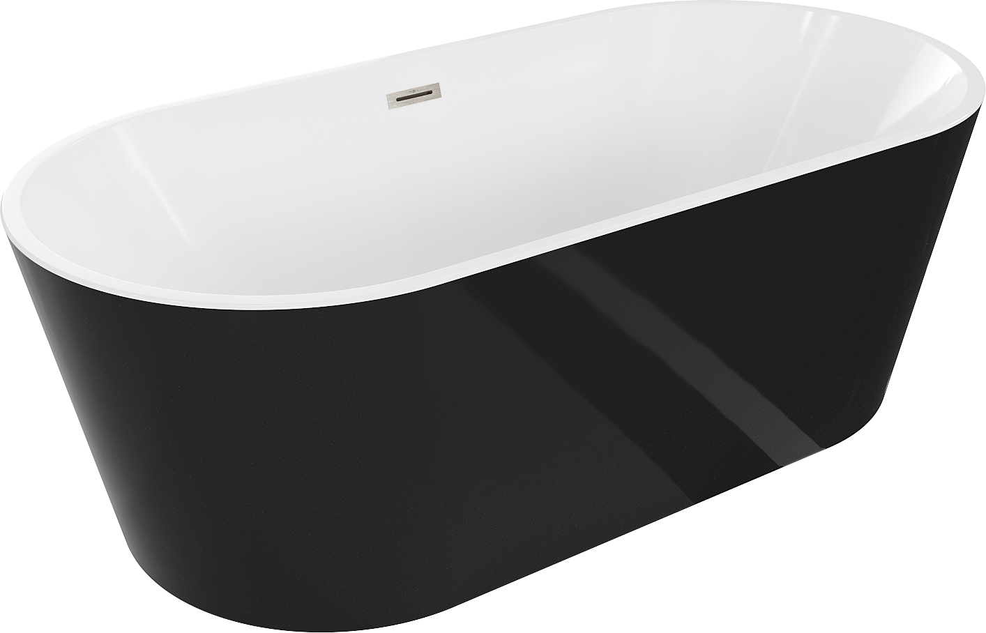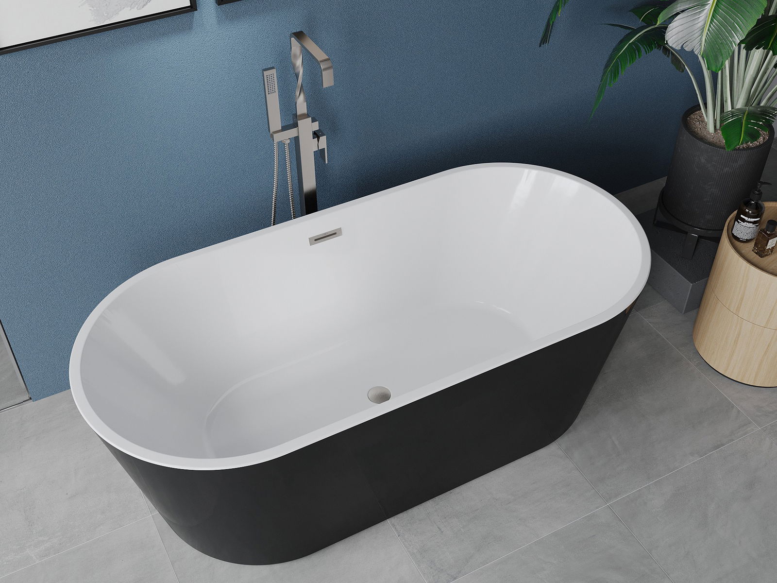 Mexen Luna baignoire autoportante 150 x 75 cm, blanc/noir, trop-plein nickel brossé - 52031507575-97