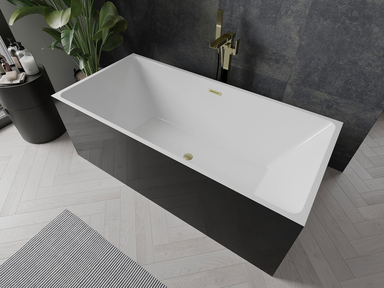 Mexen Nita baignoire autoportante 170 x 80 cm, blanc/noir, trop-plein doré brossé - 52091708075-55