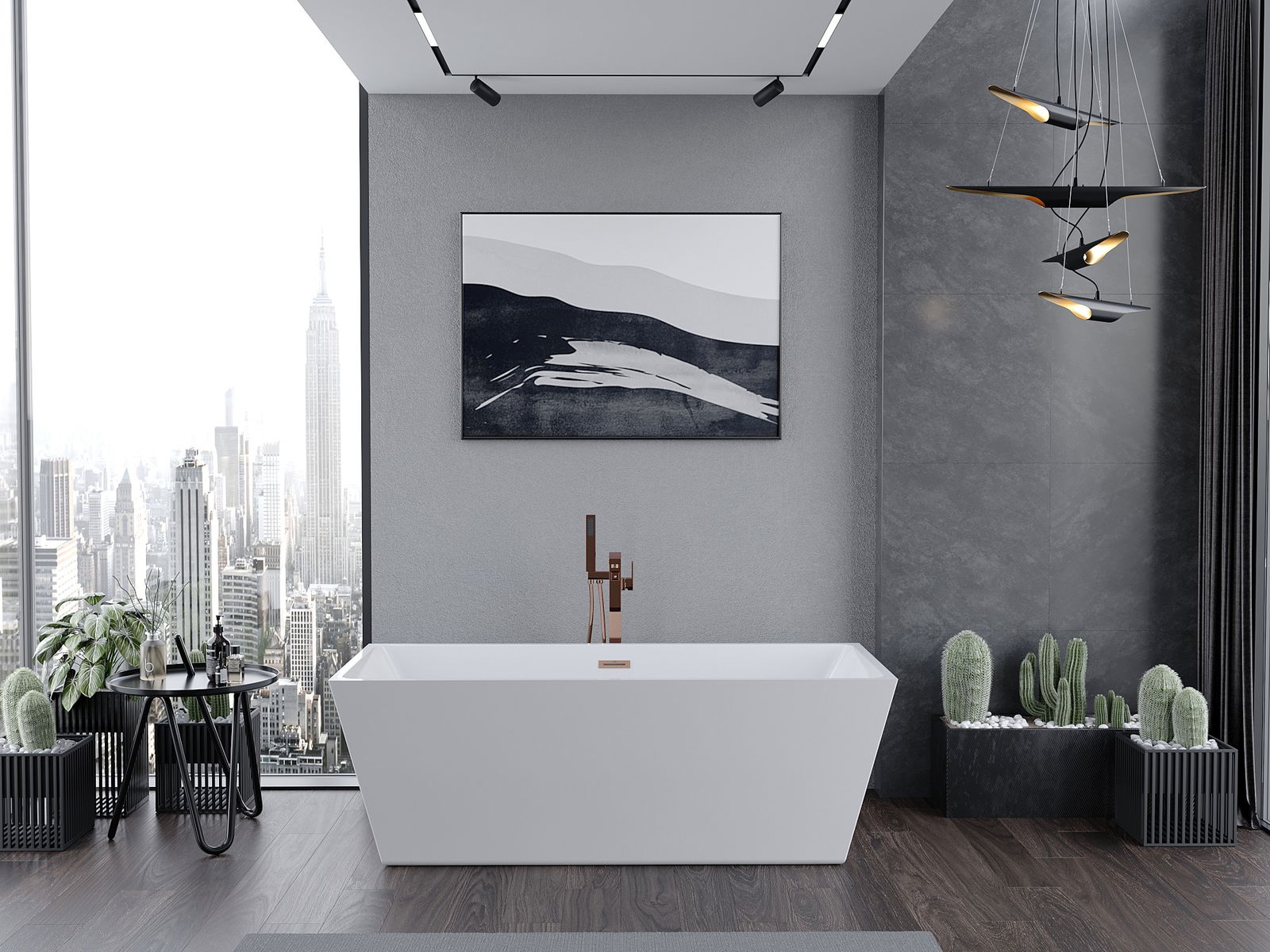 Mexen Lita baignoire autoportante 170 x 75 cm, blanche, trop-plein cuivre brossé - 52121707500-65