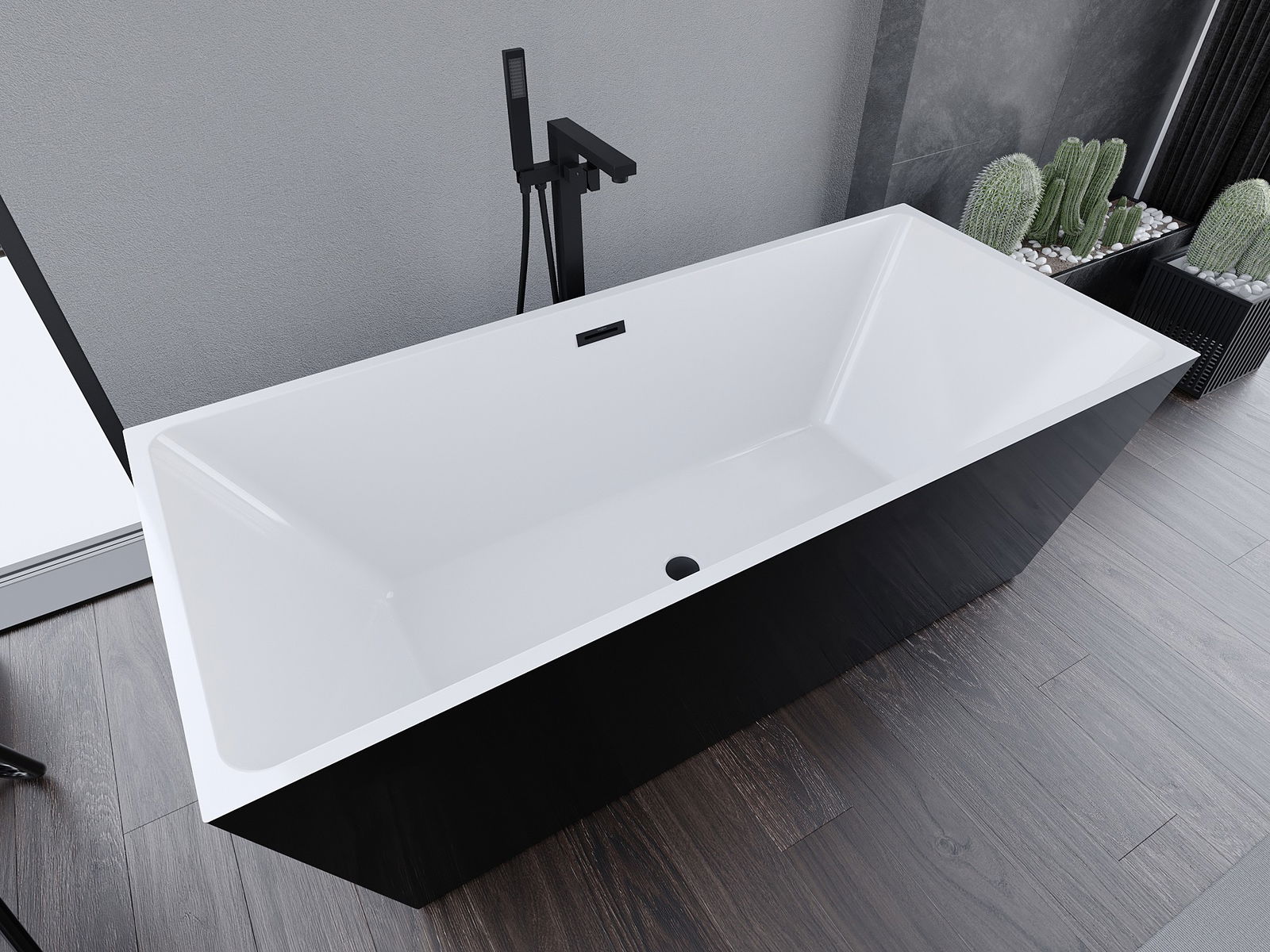 Mexen Lita baignoire îlot 170 x 75 cm, blanc/noir, trop-plein noir - 52121707575-70