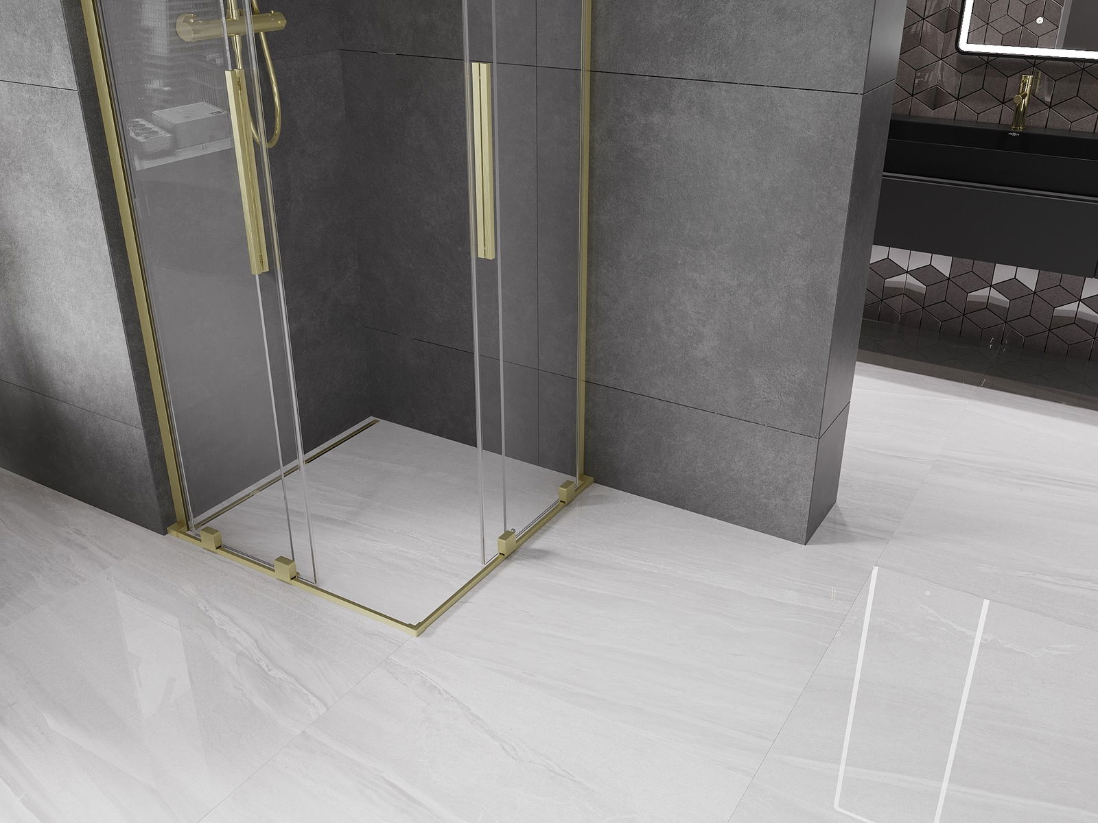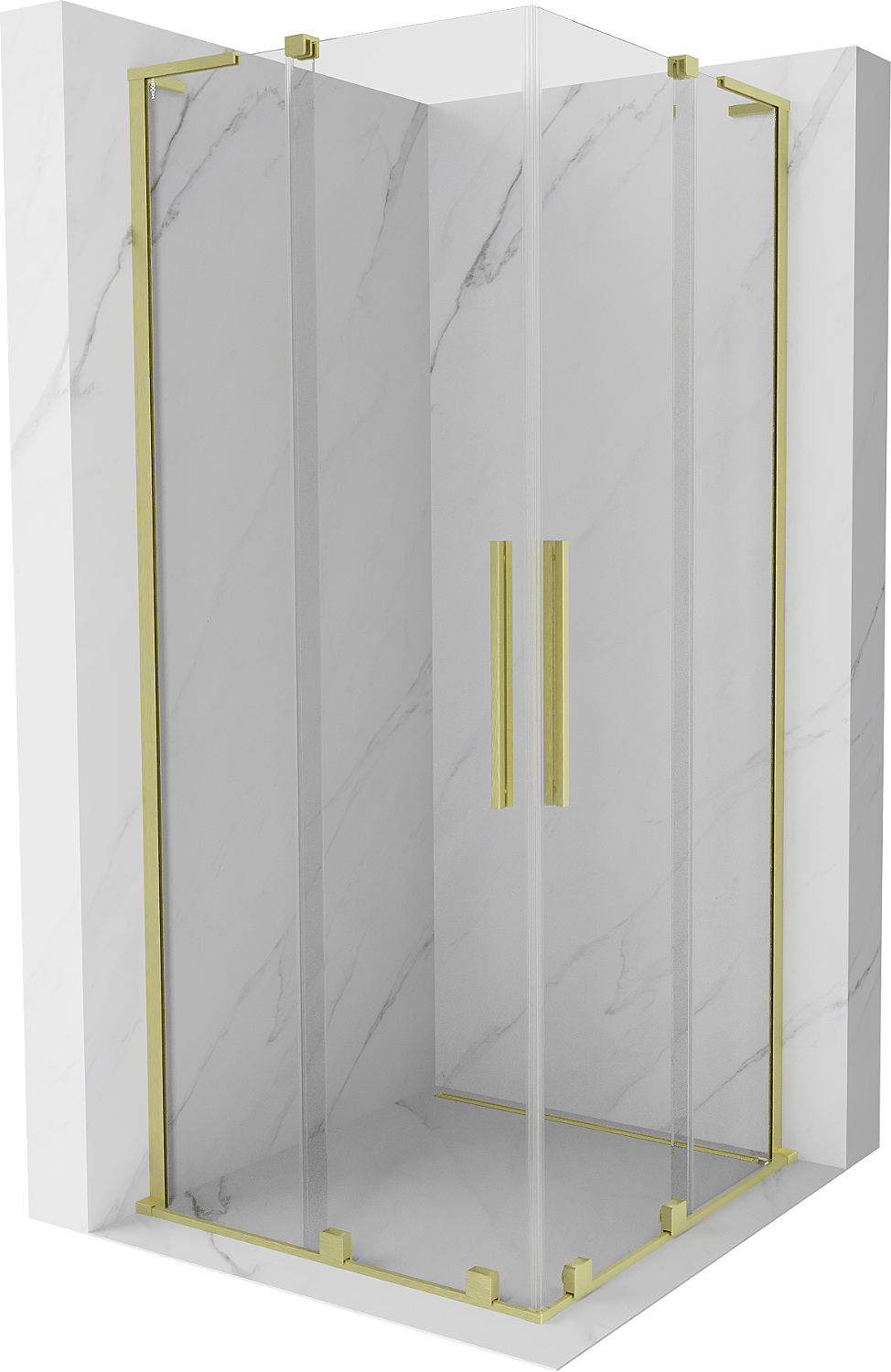 Mexen Velar L Duo cabine de douche coulissante 100 x 100 cm, transparent, or brossé - 871-100-100-02-03-55