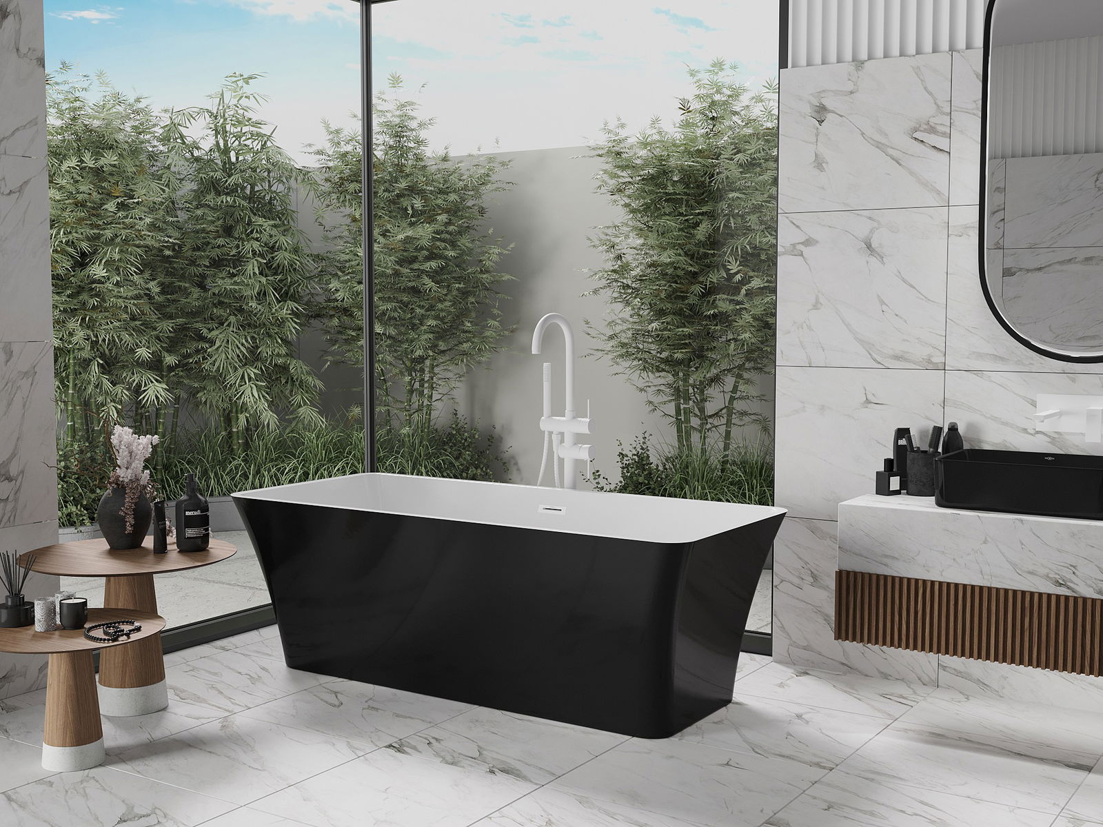 Mexen Tonia baignoire autoportante 170 x 75 cm, blanc/noir, trop-plein blanc - 52171707575-20