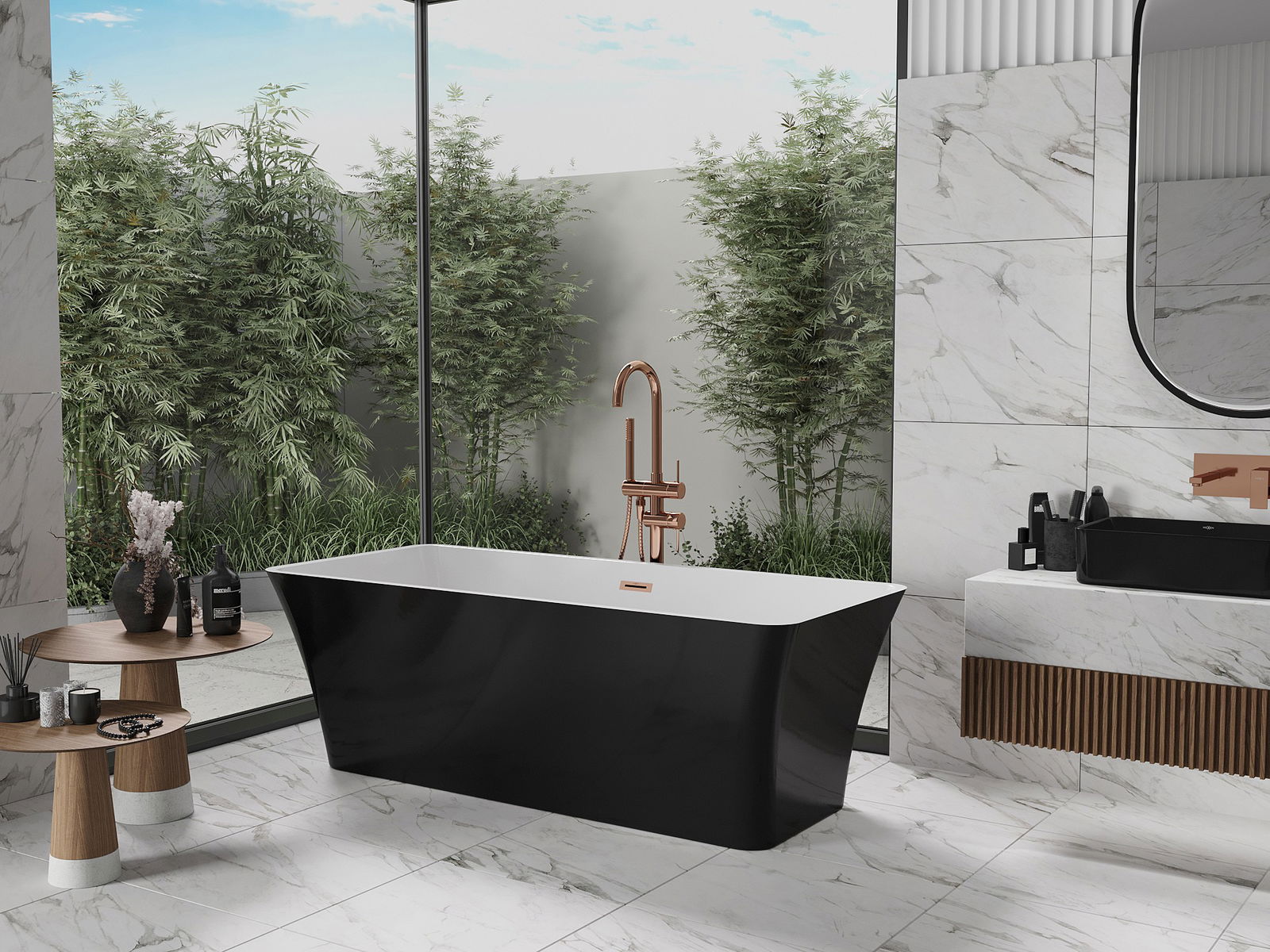 Mexen Tonia baignoire autoportante 170 x 75 cm, blanche/noire, trop-plein en cuivre brossé - 52171707575-65