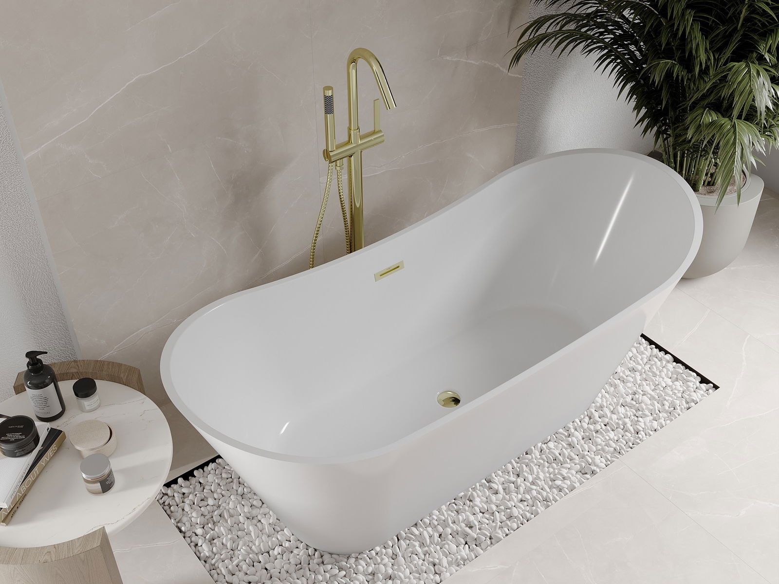 La baignoire est équipée de pieds réglables qui permettent de la mettre à niveau même sur une surface inégale. Une solution pratique qui assure une plus grande stabilité et sécurité pendant l'utilisation ainsi qu'une facilité de montage.