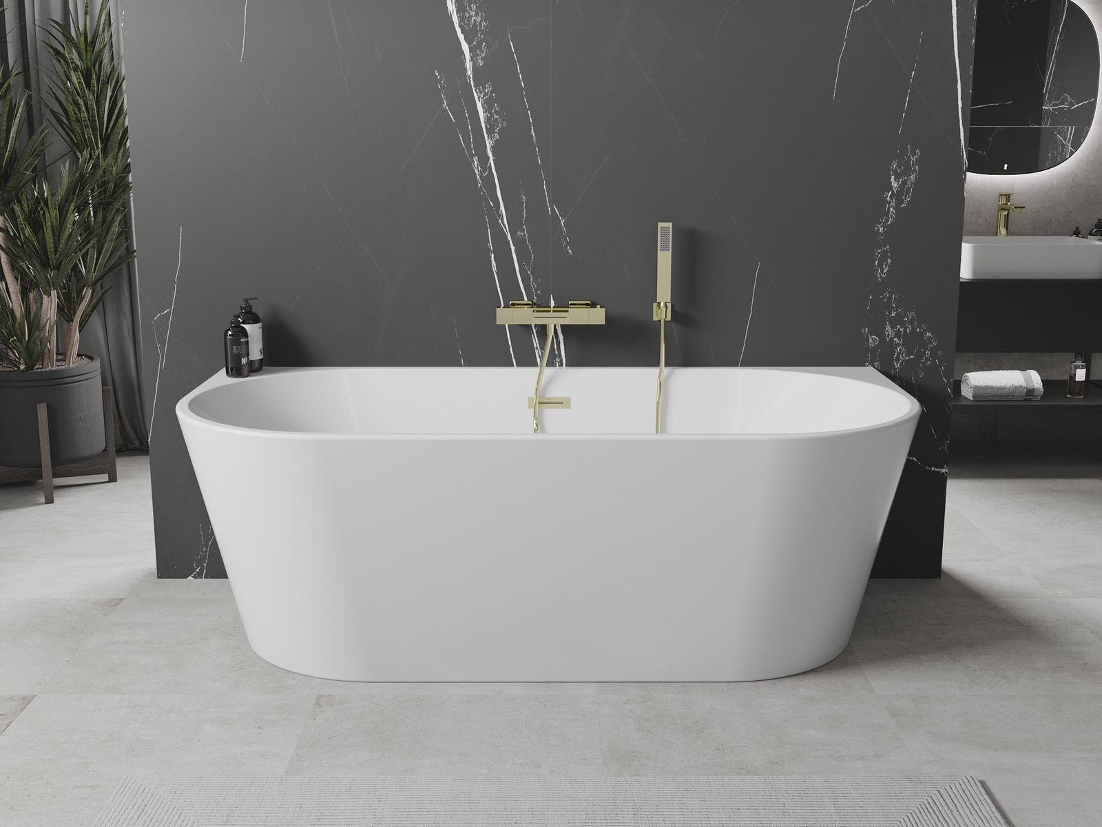 Mexen Oval baignoire autoportante adossée 140 x 75 cm, blanche, trop-plein or brossé - 52671407500-55