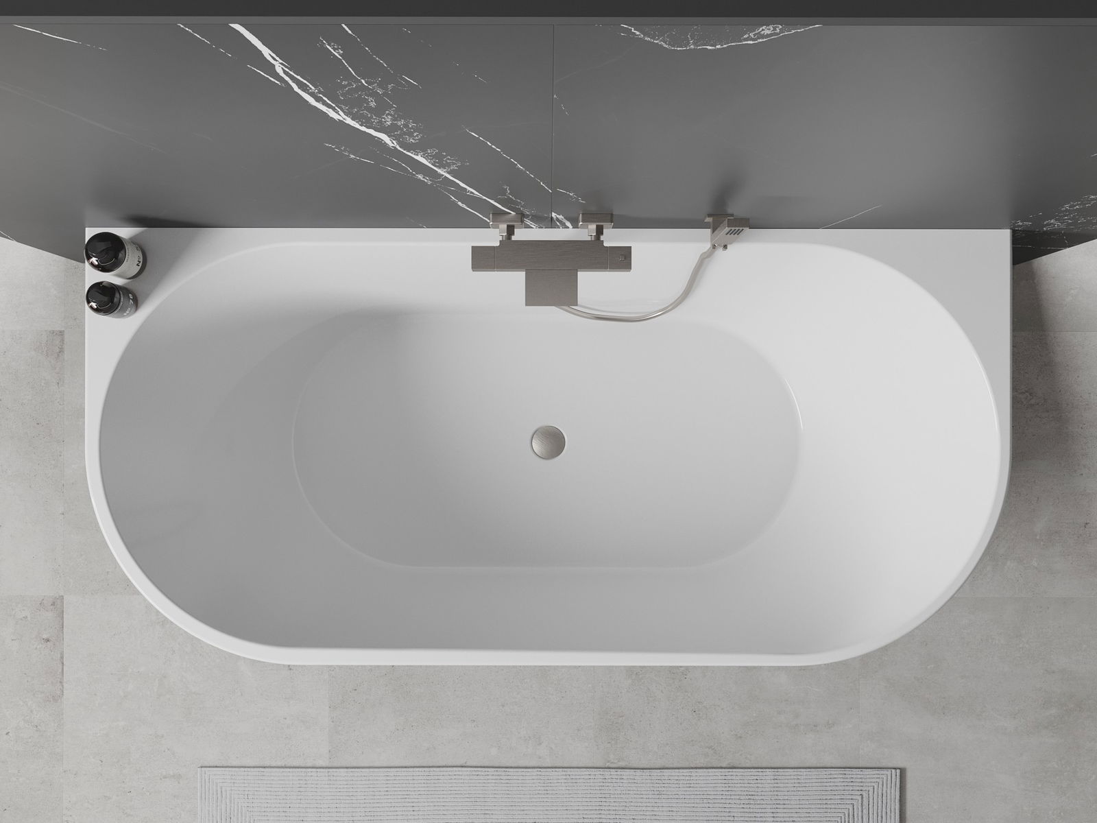 Mexen Oval baignoire autoportante semi-encastrée 140 x 75 cm, blanche, trop-plein nickel brossé - 52671407500-97