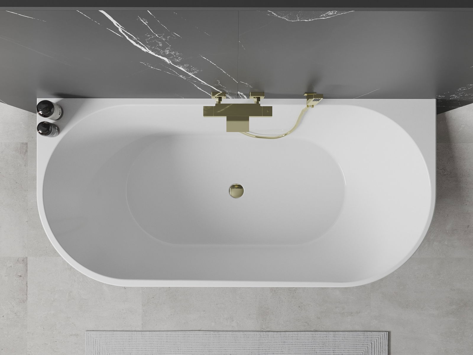 Mexen Oval bain-marie îlot attenant 150 x 75 cm, blanc, trop-plein doré - 52671507500-50