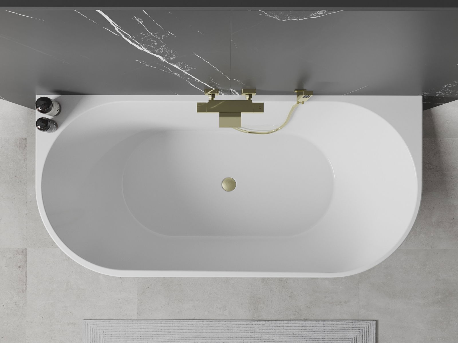 Mexen Oval baignoire autoportante adossée 150 x 75 cm, blanche, trop-plein doré brossé - 52671507500-55