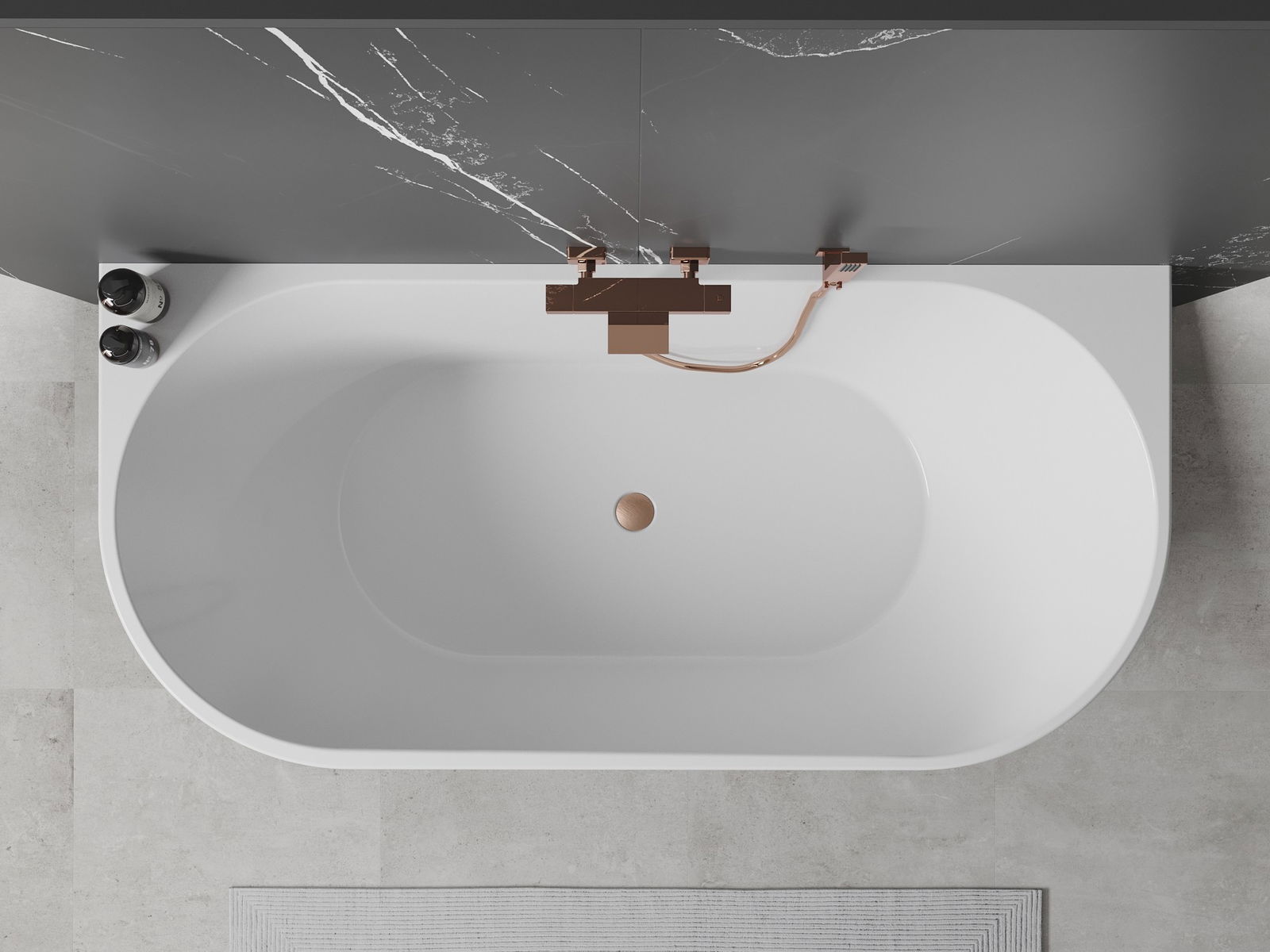 Mexen Oval baignoire autoportante adossée 150 x 75 cm, blanche, trop-plein cuivre brossé - 52671507500-65