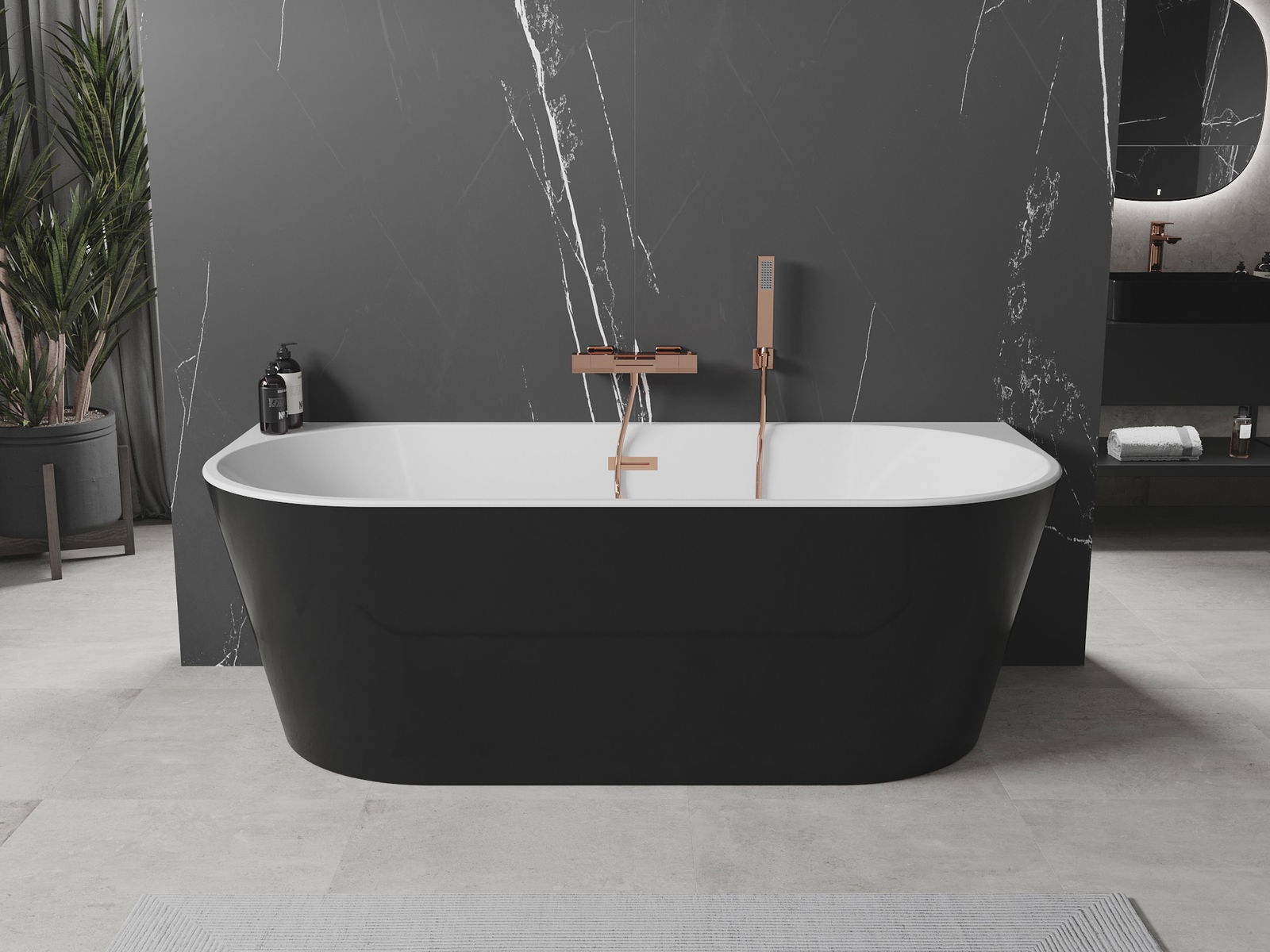 Mexen Oval baignoire autoportante murale 150 x 75 cm, blanc/noir, trop-plein or rose - 52671507575-60