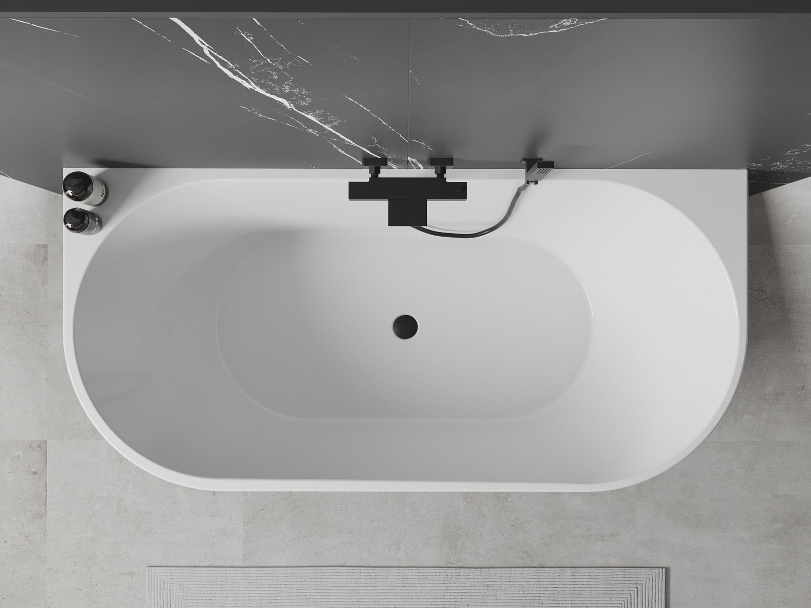 Mexen Oval baignoire autoportante adossée 150 x 75 cm, blanche/noire, trop-plein noir - 52671507575-70