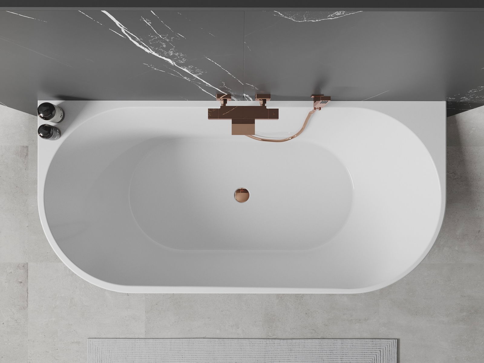 Mexen Oval baignoire autoportante murale 160 x 80 cm, blanche, trop-plein or rose - 52671608000-60