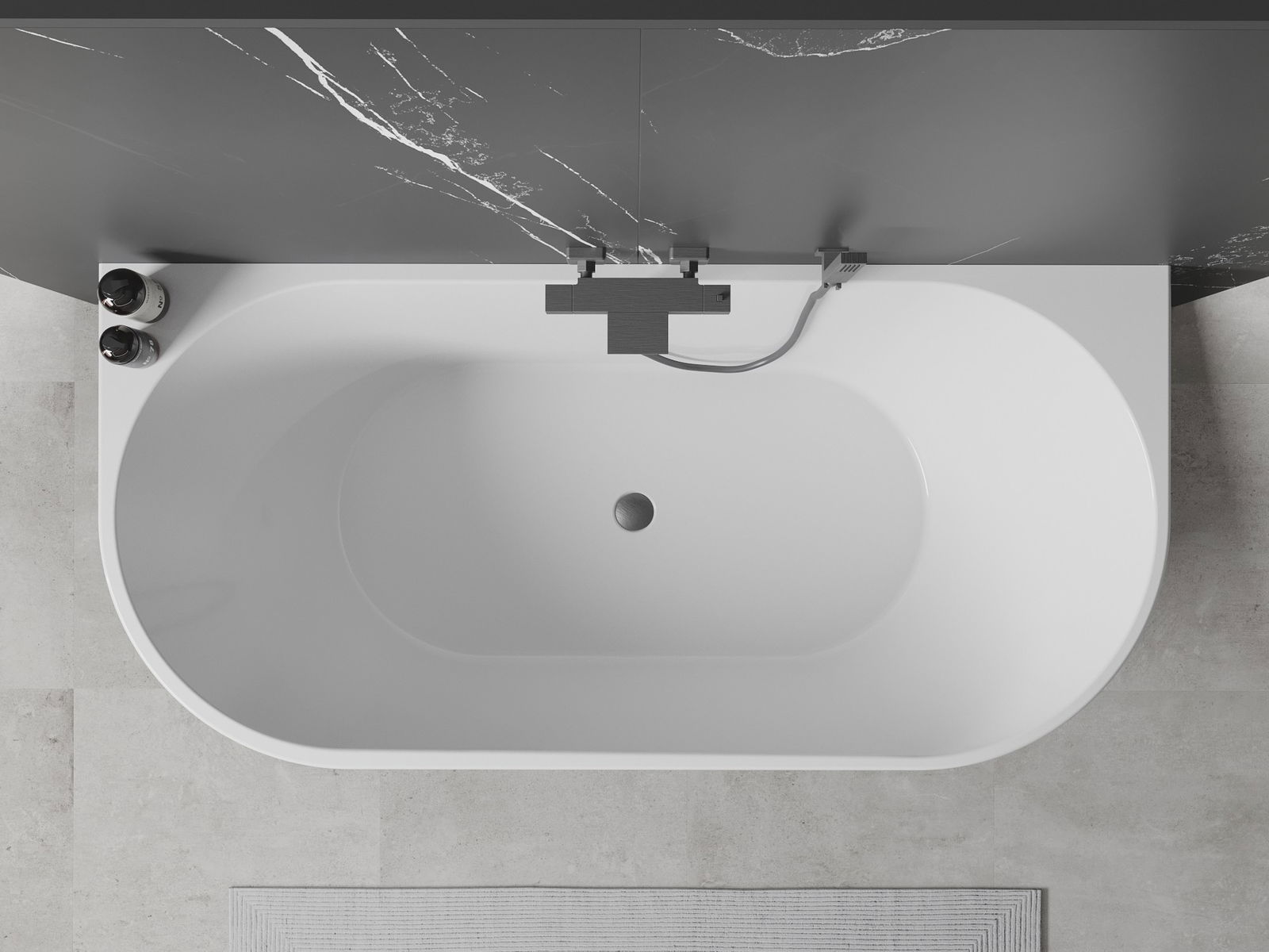 Mexen Oval baignoire autoportante adossée 160 x 80 cm, blanche, trop-plein gun gray brossé - 52671608000-66