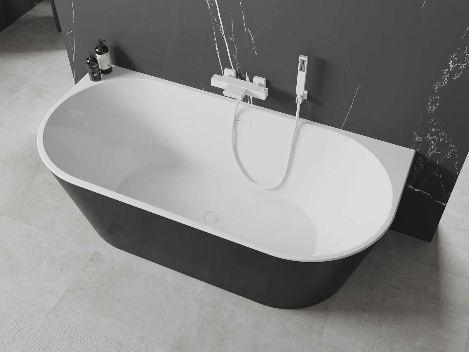 Mexen Oval baignoire autoportante adossée 160 x 80 cm, blanche/noire, trop-plein blanc - 52671608075-20