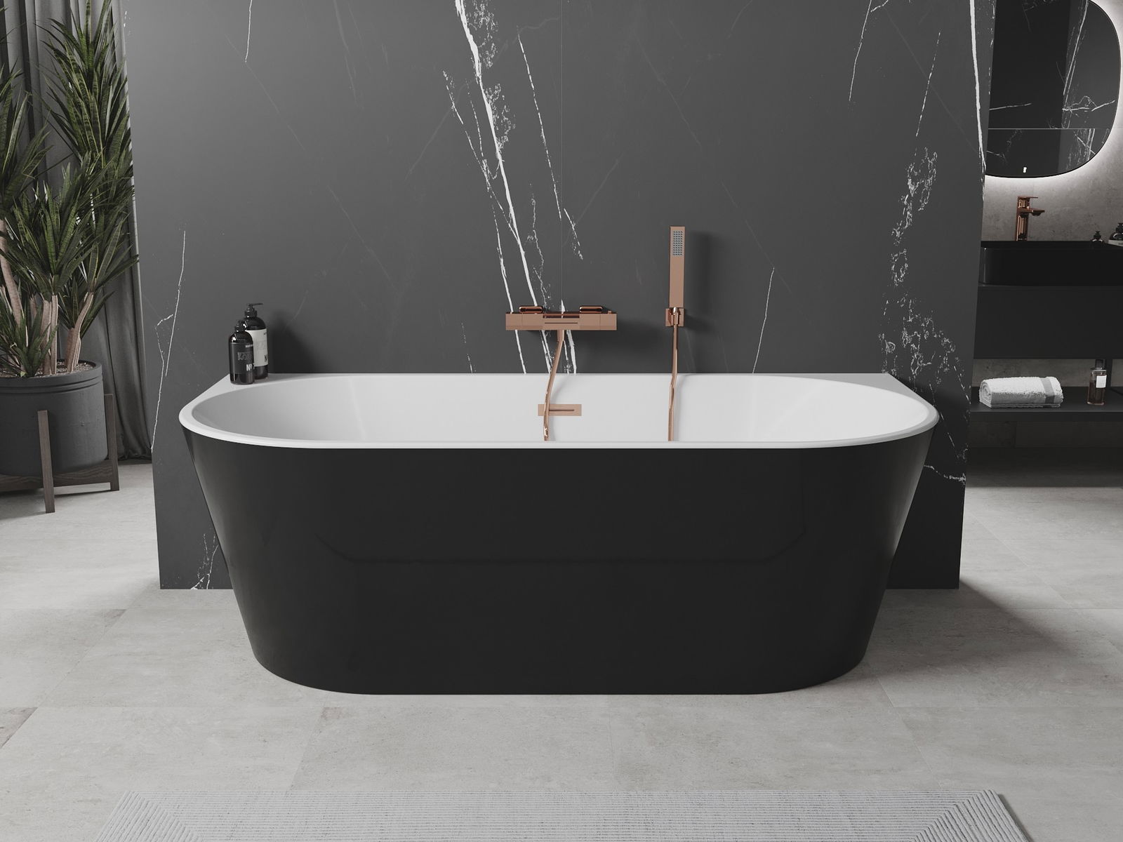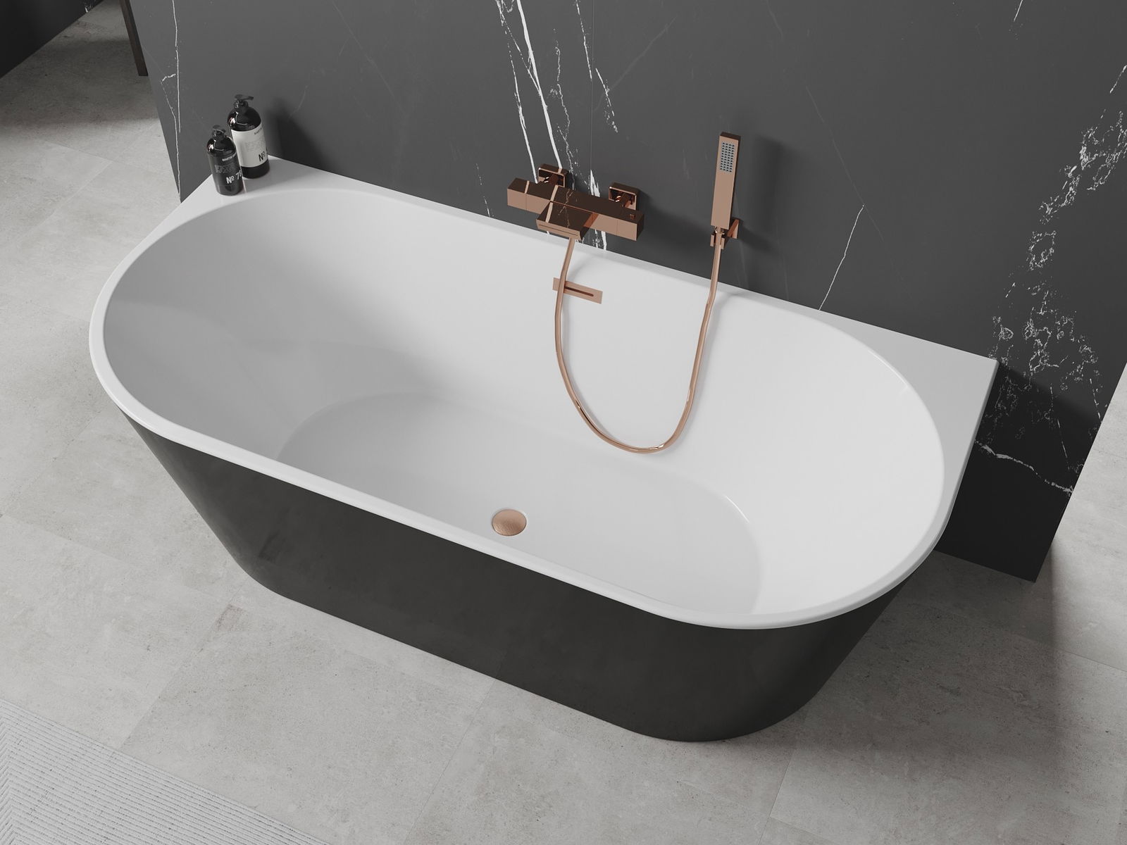 Mexen Oval baignoire autoportante adossée 160 x 80 cm, blanc/noir, trop-plein cuivre brossé - 52671608075-65