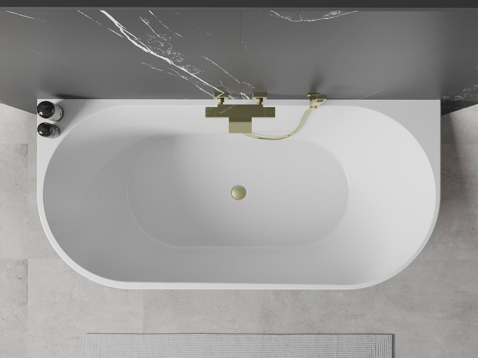 Mexen Oval baignoire autoportante murale 170 x 80 cm, blanc/noir, trop-plein or brossé - 52671708075-55
