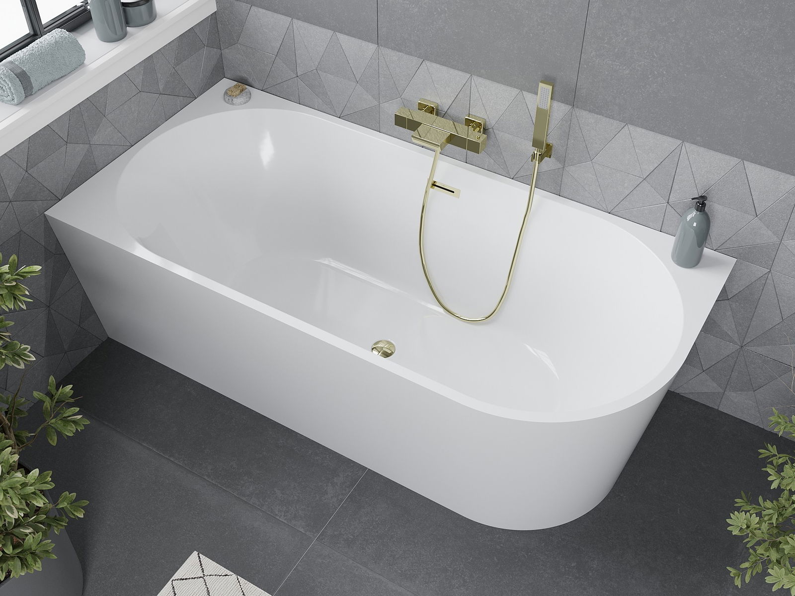 Mexen Mia baignoire autoportante d'angle gauche 150 x 75 cm, blanche, trop-plein doré - 52691507500L-50