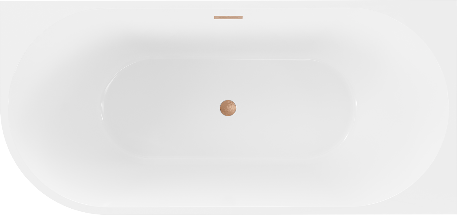Mexen Mia baignoire autoportante d'angle droite 150 x 75 cm, blanche, trop-plein cuivre brossé - 52691507500P-65