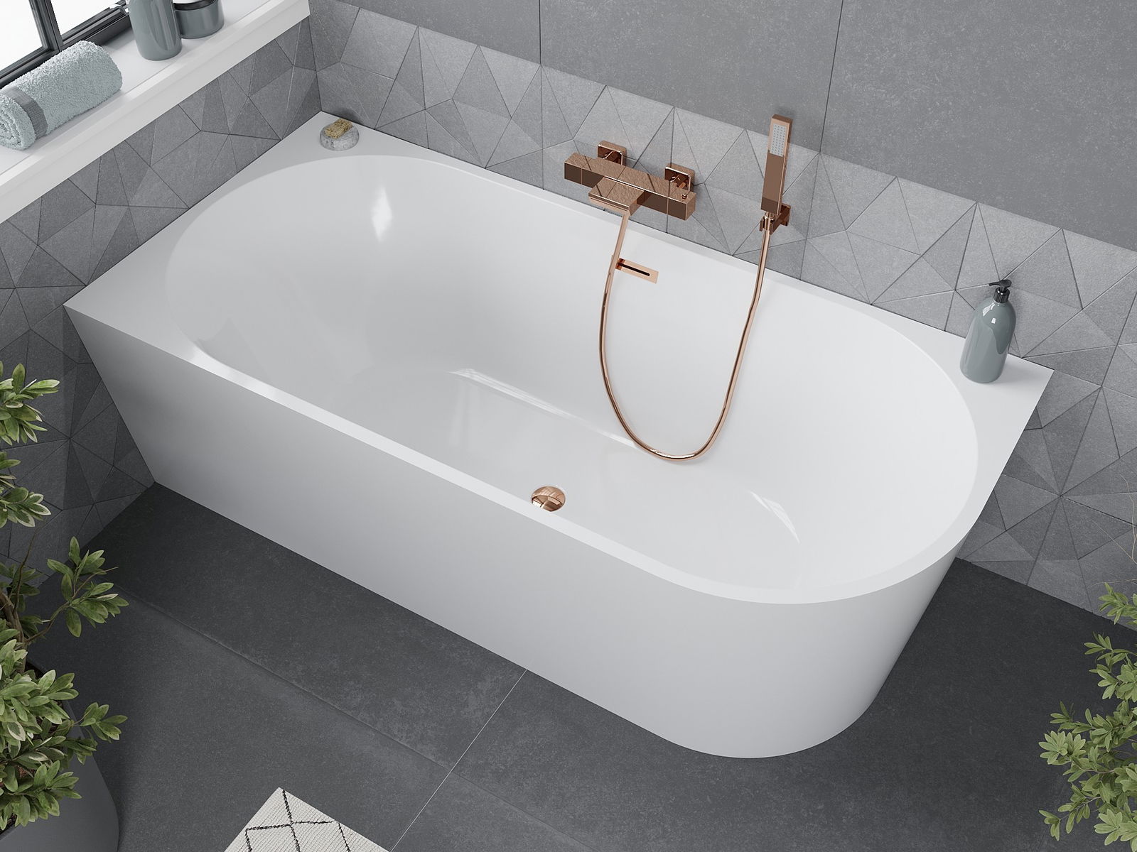 Mexen Mia baignoire autoportante d'angle gauche 170 x 80 cm, blanche, trop-plein or rose - 52691708000L-60