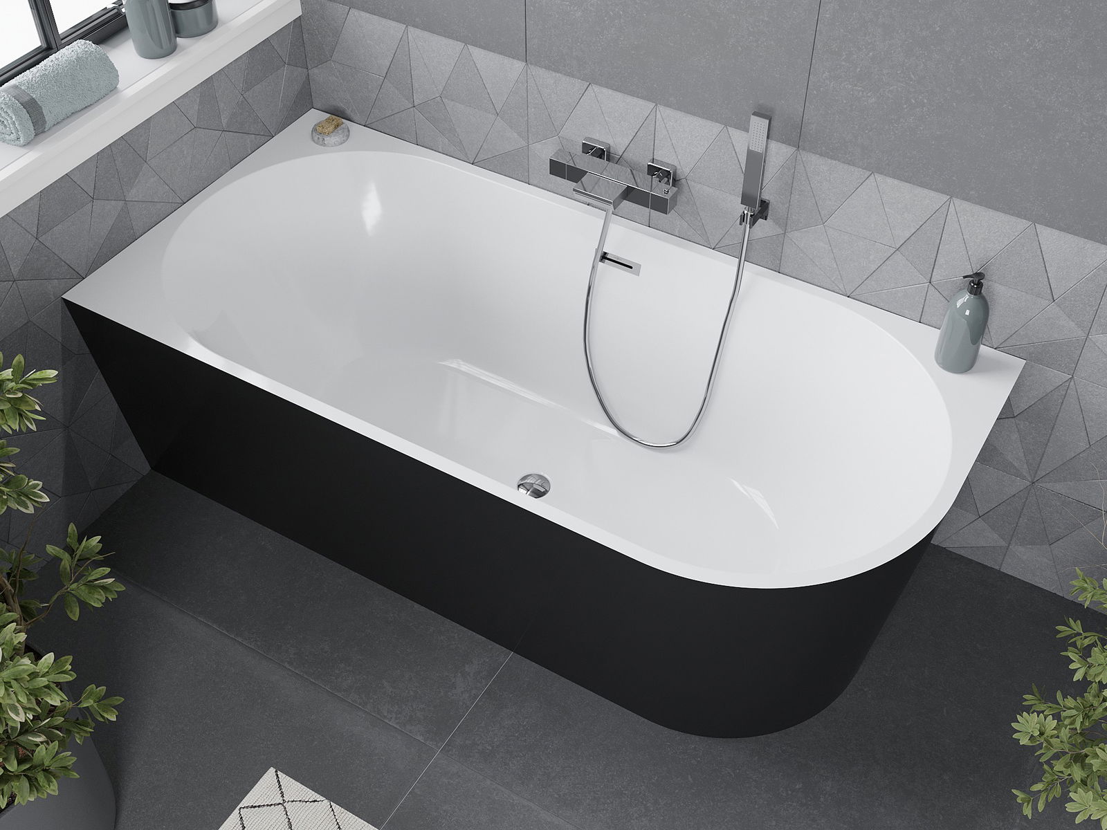 Mexen Mia baignoire autoportante d'angle gauche 170 x 80 cm, blanc/noir, trop-plein chromé - 52691708075L-01