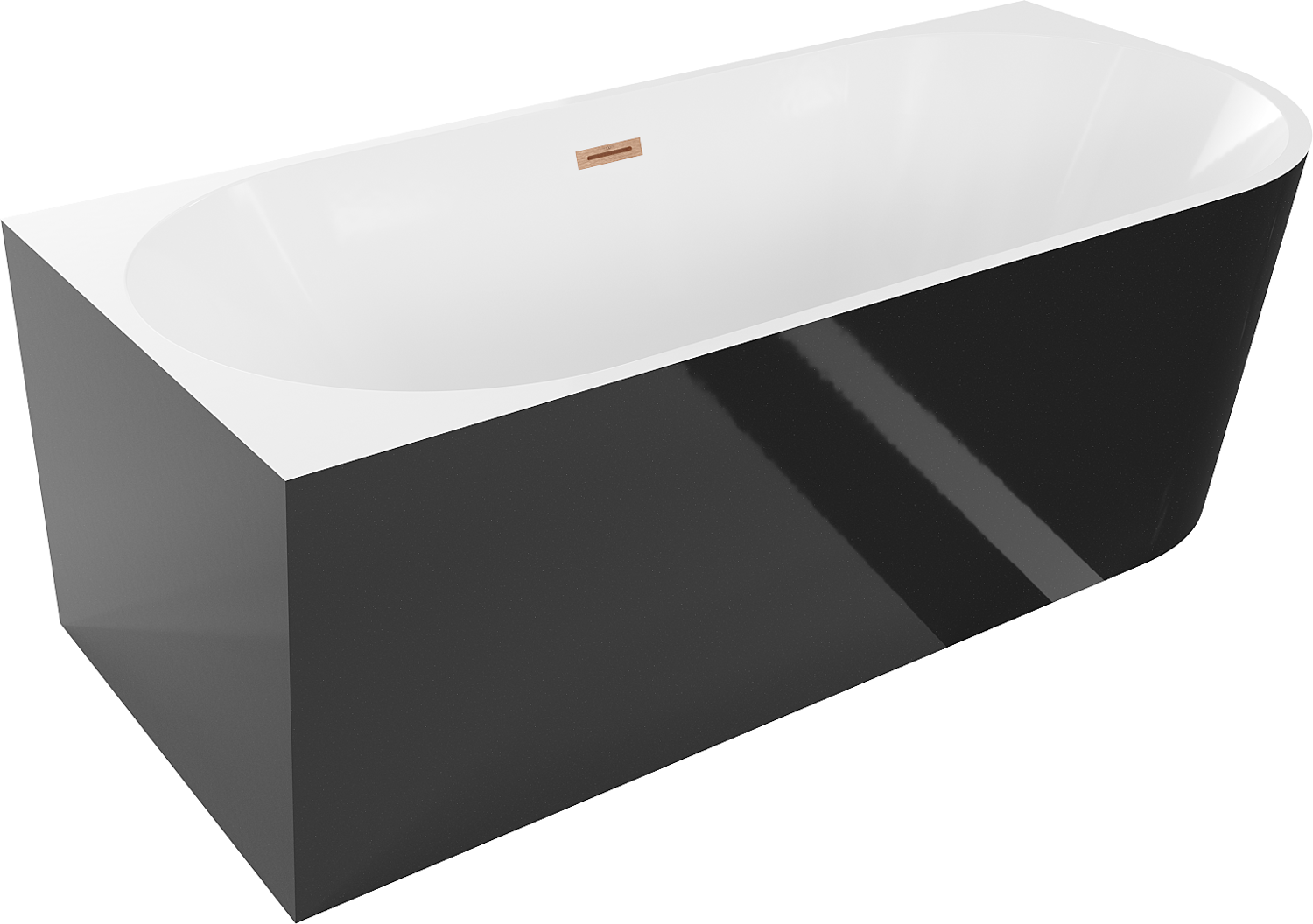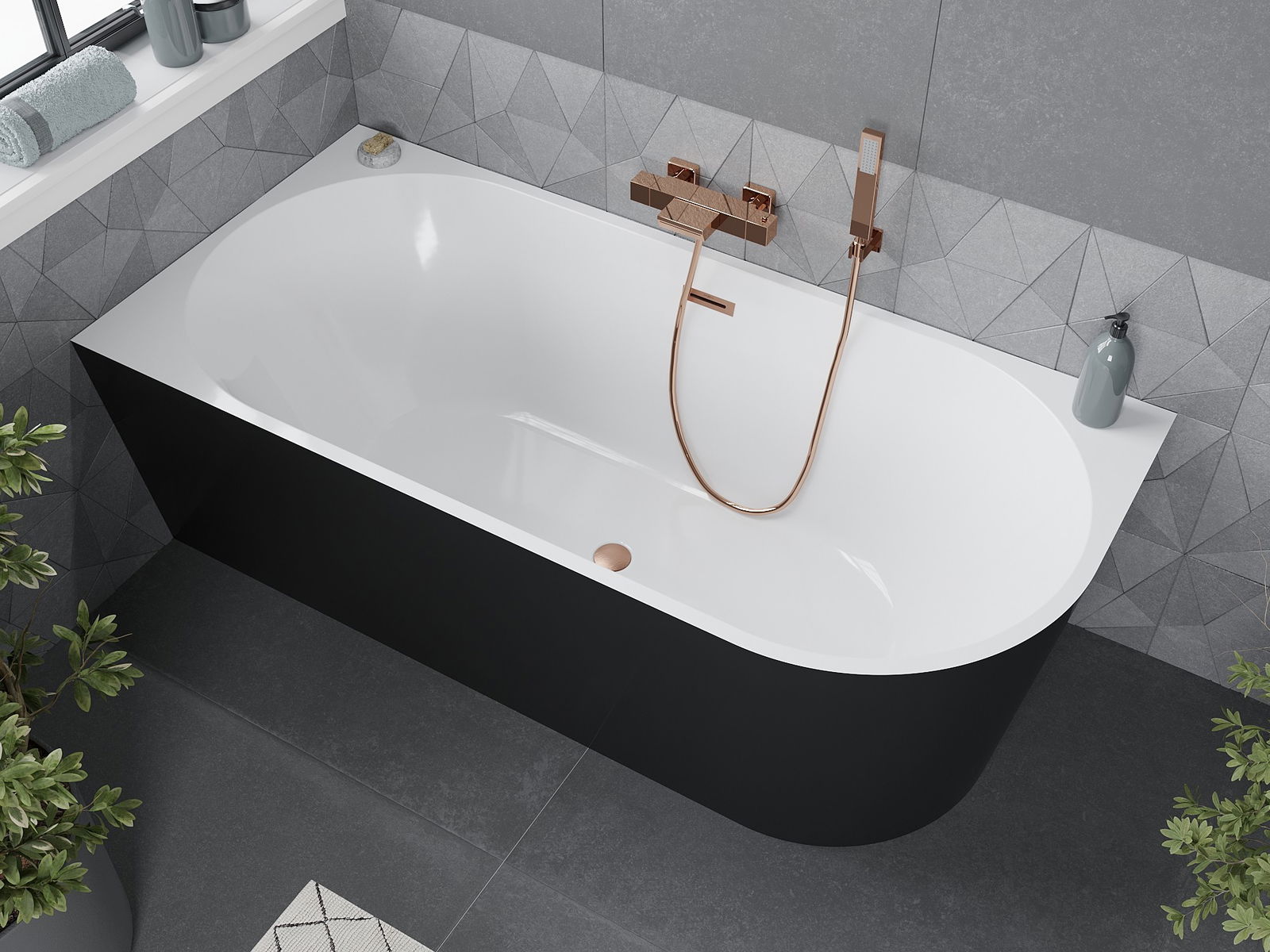 Mexen Mia baignoire autoportante d'angle gauche 170 x 80 cm, blanc/noir, trop-plein cuivre brossé - 52691708075L-65