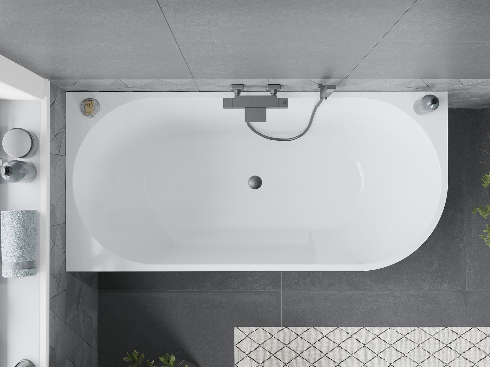 Mexen Mia baignoire autoportante d'angle gauche 170 x 80 cm, blanche/noire, trop-plein gris fusil brossé - 52691708075L-66