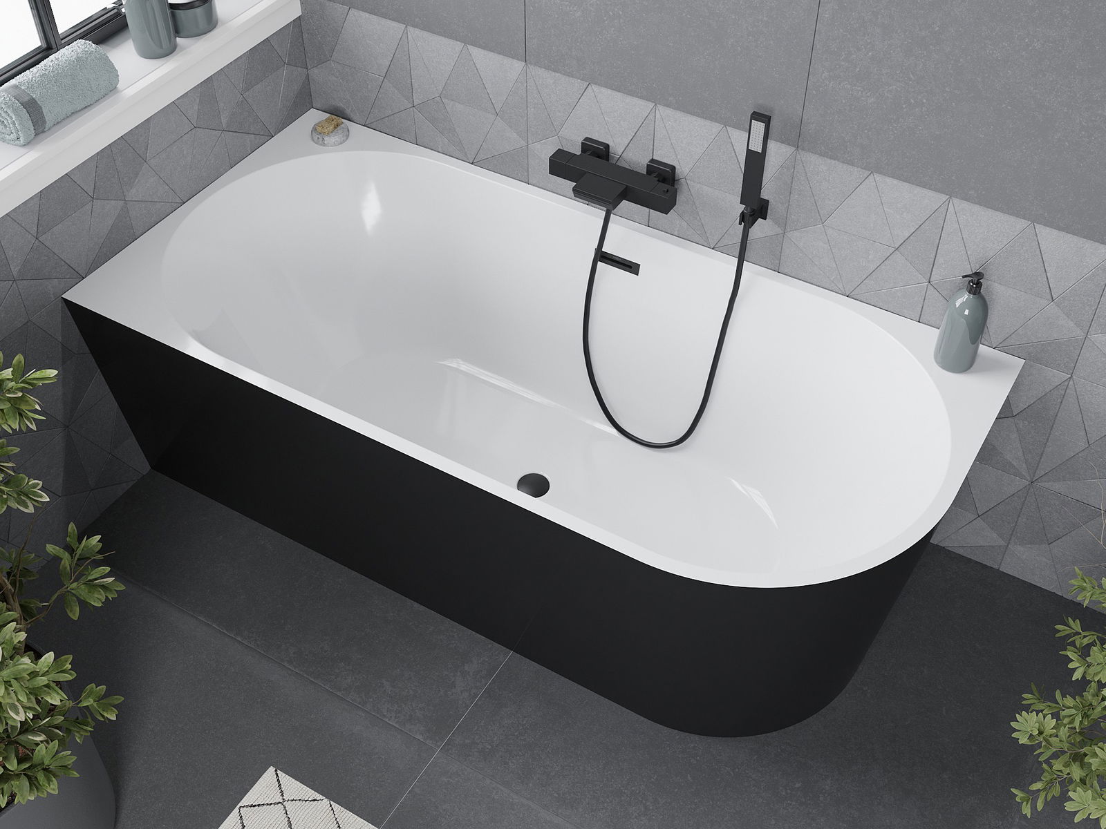 Mexen Mia baignoire autoportante d'angle gauche 170 x 80 cm, blanc/noir, trop-plein noir - 52691708075L-70