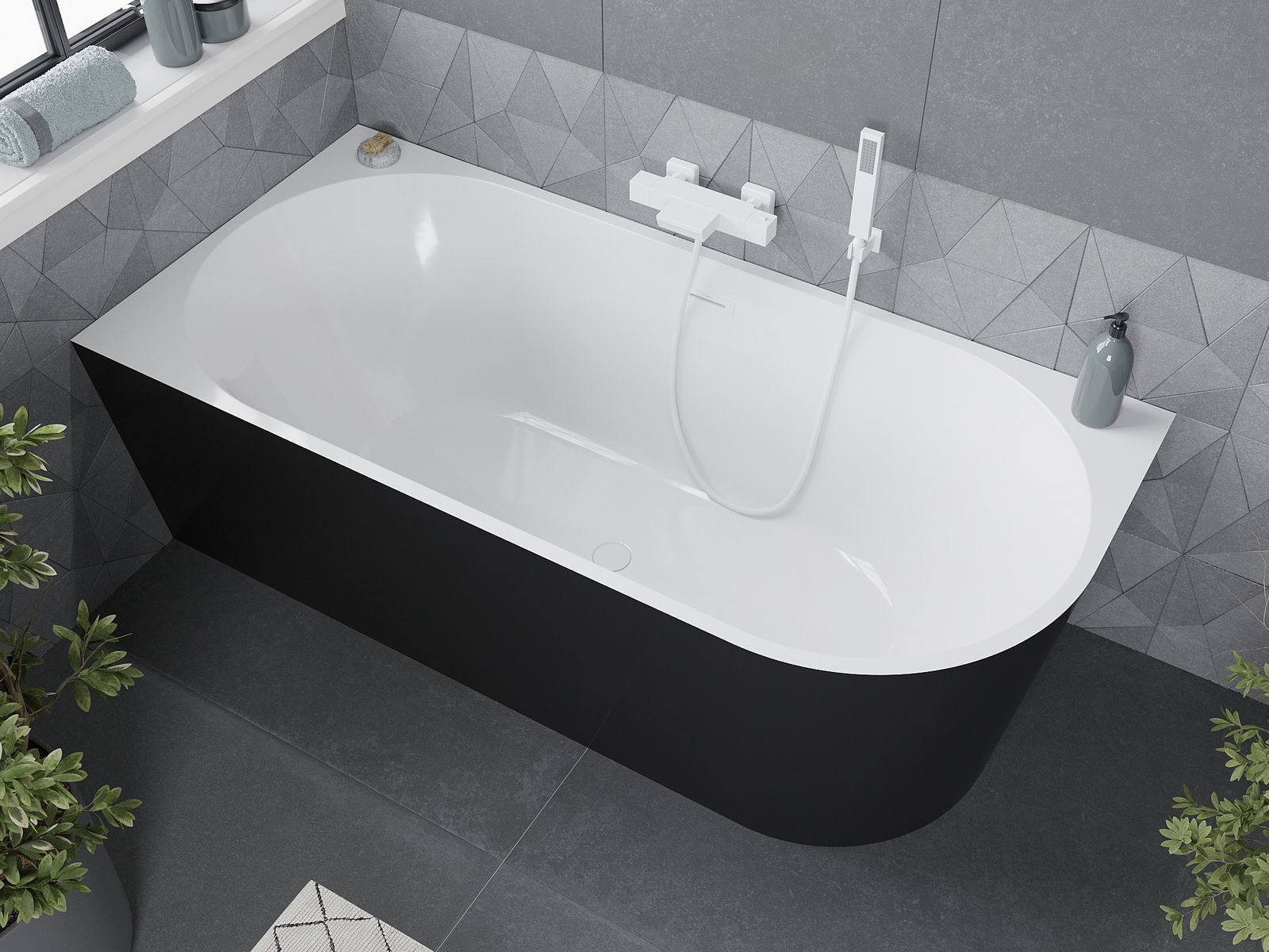 Mexen Mia baignoire autoportante d'angle gauche 180 x 80 cm, blanc/noir, trop-plein blanc - 52691808075L-20