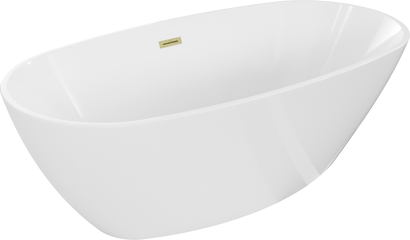 Mexen Eris baignoire autoportante 155 x 80 cm, blanche, trop-plein or brossé - 53441558000-55