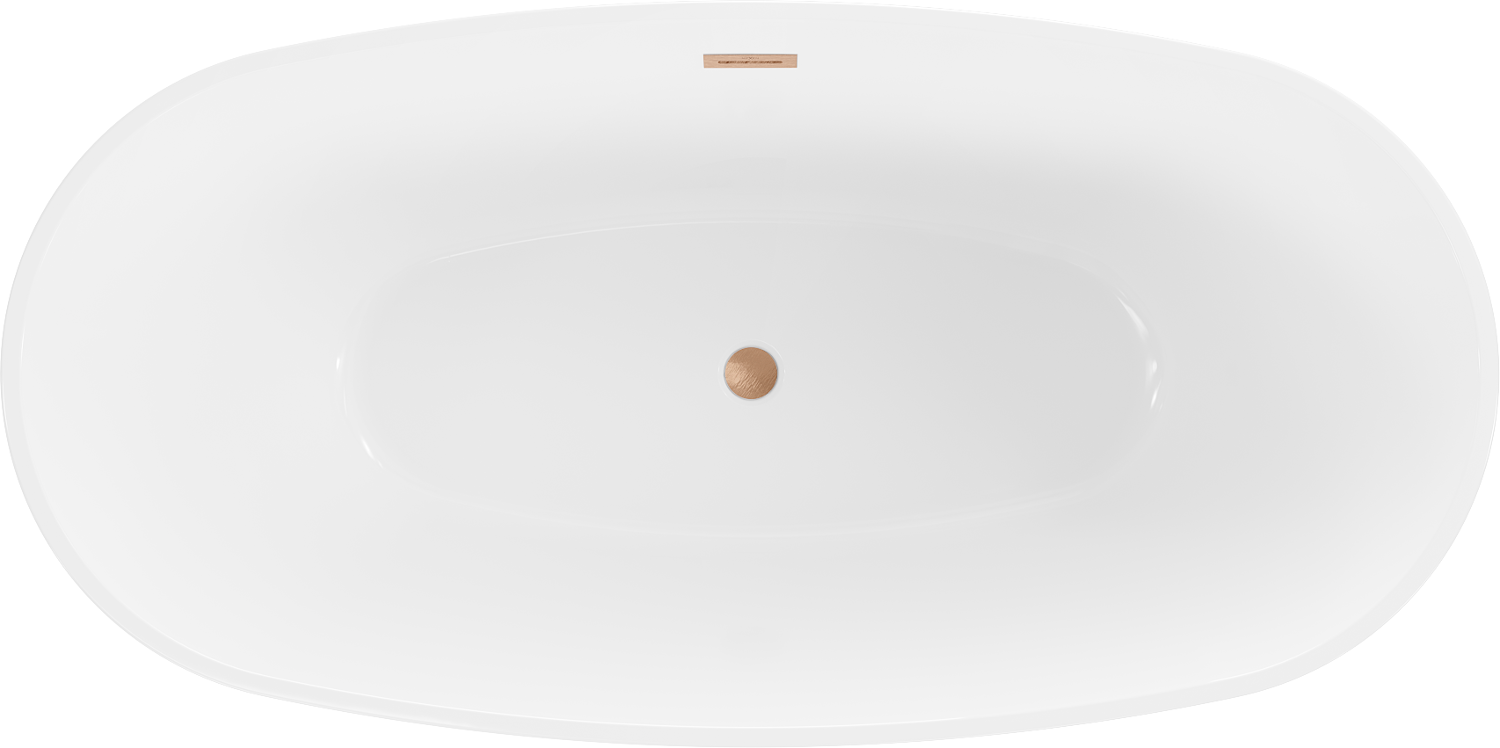 Mexen Eris baignoire autoportante 155 x 80 cm, blanc/noir, trop-plein cuivre brossé - 53441558075-65
