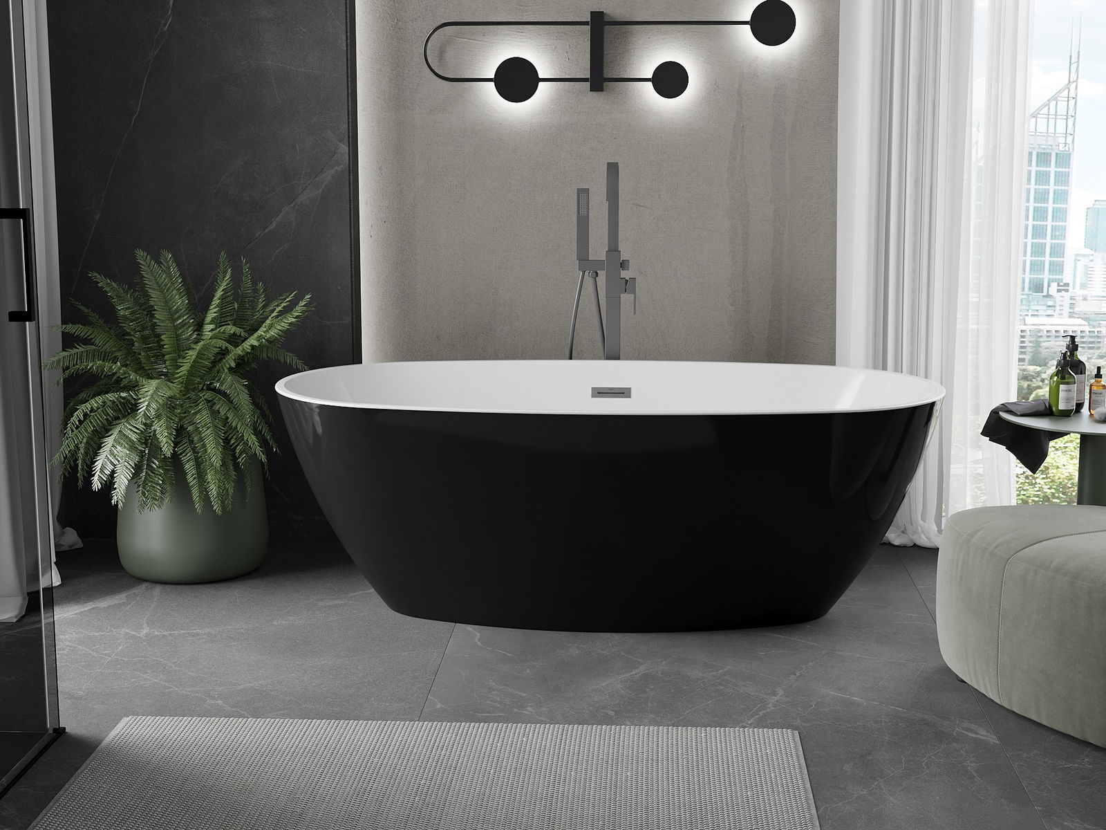 Mexen Eris baignoire autoportante 155 x 80 cm, blanche/noire, trop-plein gris canon brossé - 53441558075-66