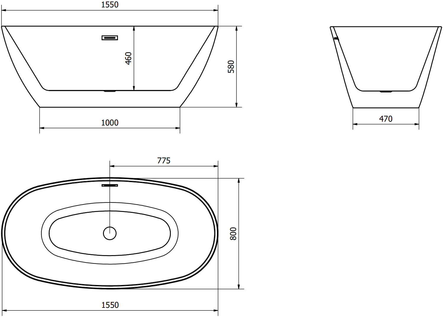 Mexen Eris baignoire autoportante 155 x 80 cm, blanc/noir, trop-plein noir - 53441558075-70