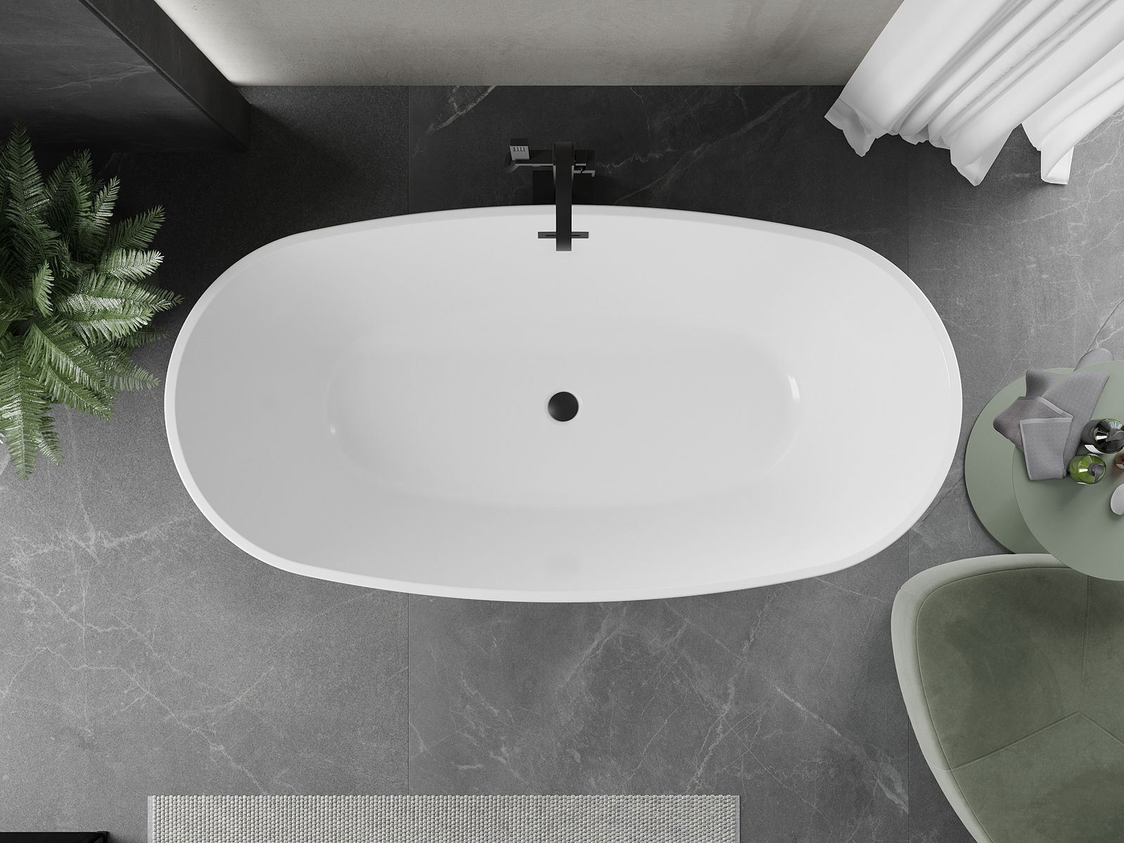 Mexen Eris baignoire autoportante 180 x 80 cm, blanche, trop-plein noir - 53441808000-70