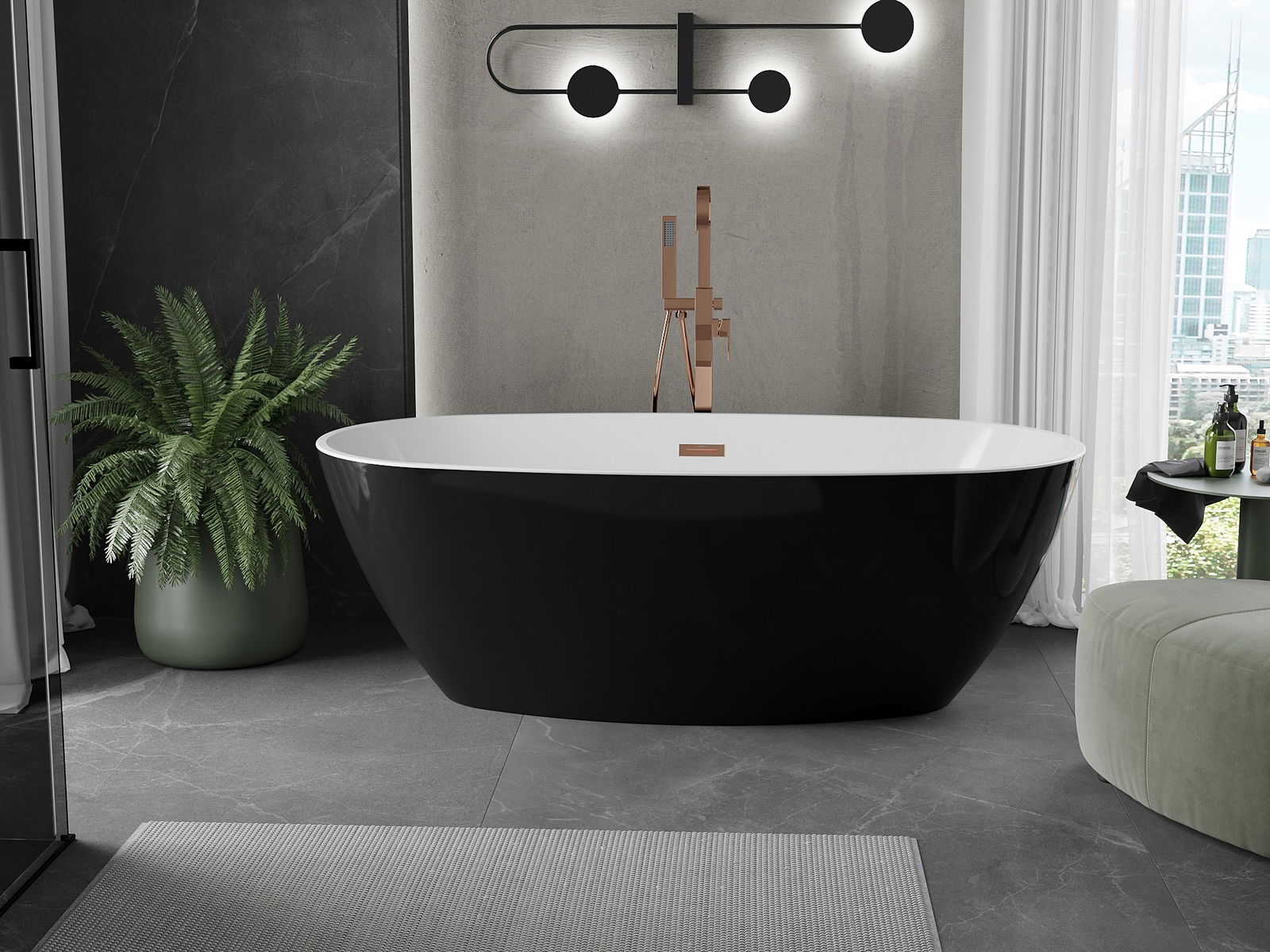 Mexen Eris baignoire autoportante 180 x 80 cm, blanche/noire, trop-plein or rose - 53441808075-60