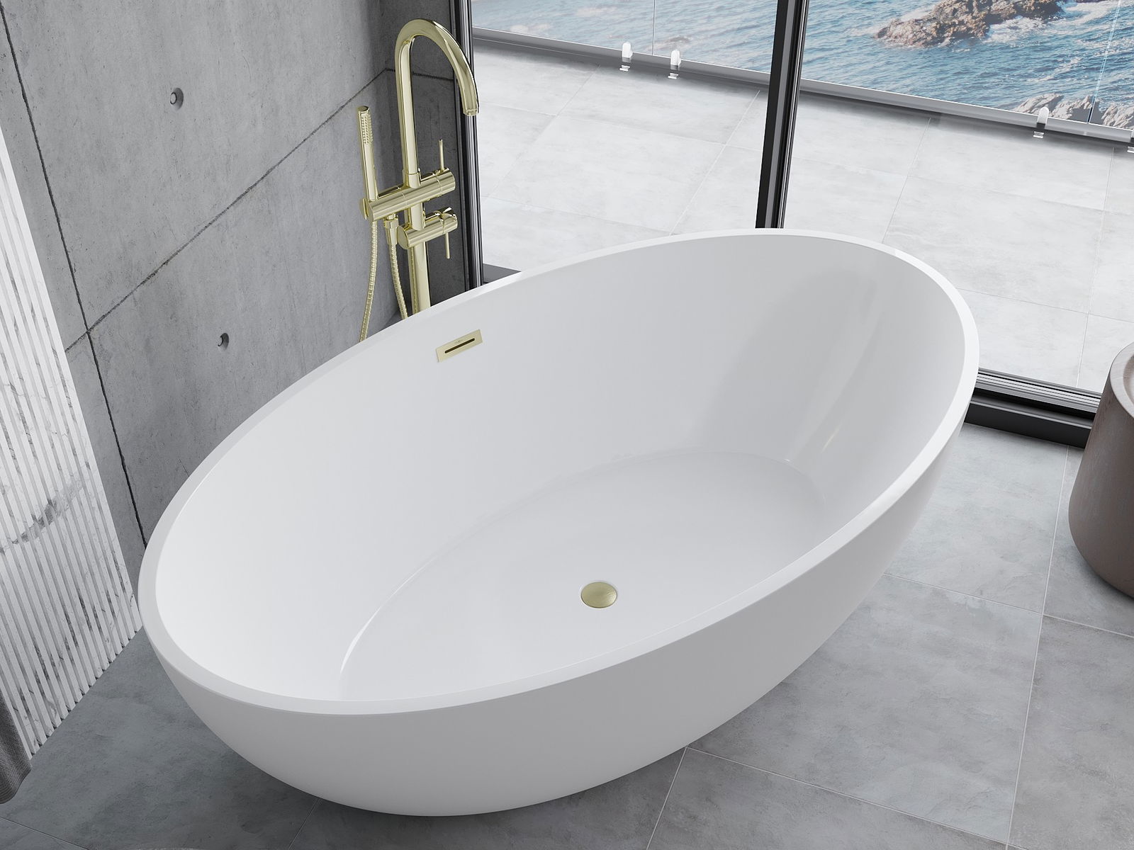 La baignoire est équipée de pieds réglables qui permettent de la mettre à niveau même sur une surface inégale. Une solution pratique qui assure une plus grande stabilité et sécurité pendant l'utilisation ainsi qu'une facilité de montage.
