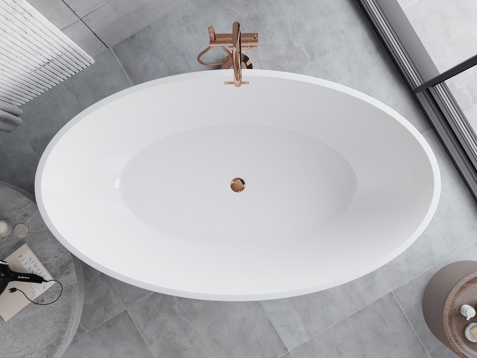 La baignoire est équipée de pieds réglables qui permettent de la mettre à niveau même sur une surface inégale. Une solution pratique qui assure une plus grande stabilité et sécurité pendant l'utilisation ainsi qu'une facilité de montage.