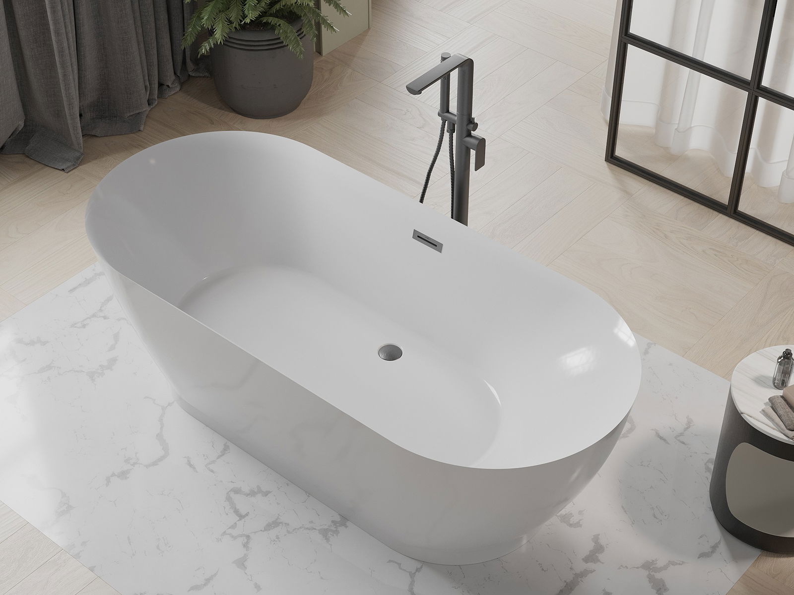 Mexen Roxy baignoire autoportante 180 x 85 cm, blanche, trop-plein gris pistolet brossé - 51201808500-66