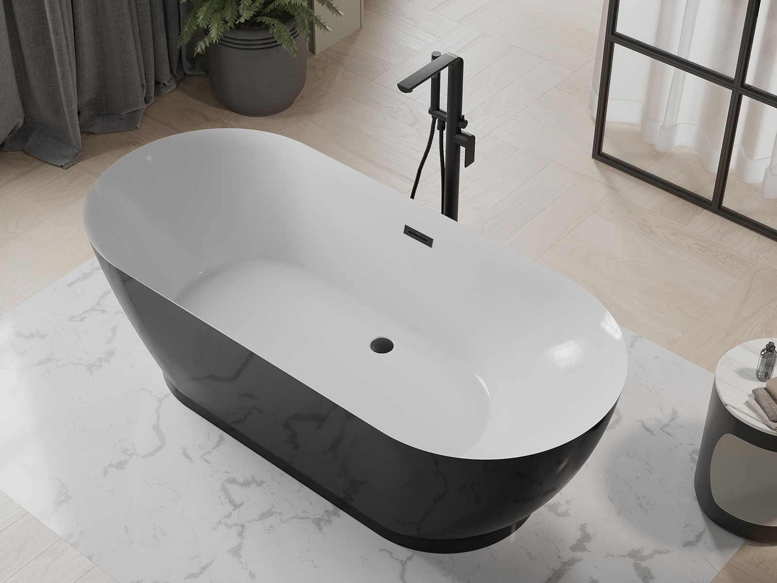 Mexen Roxy baignoire autoportante 180 x 85 cm, blanche/noire, trop-plein noir - 51201808575-70