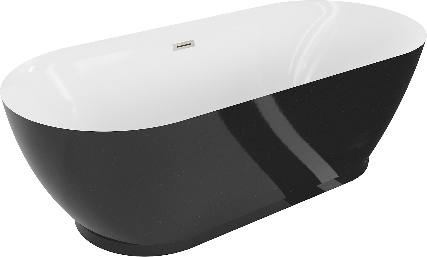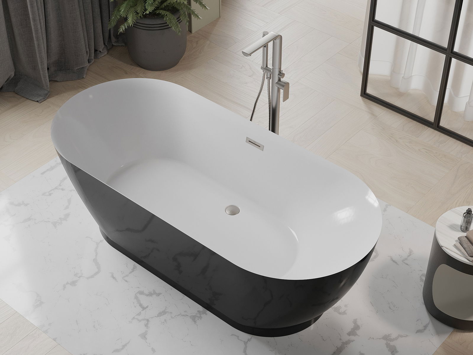 Mexen Roxy baignoire autoportante 180 x 85 cm, blanc/noir, trop-plein nickel brossé - 51201808575-97