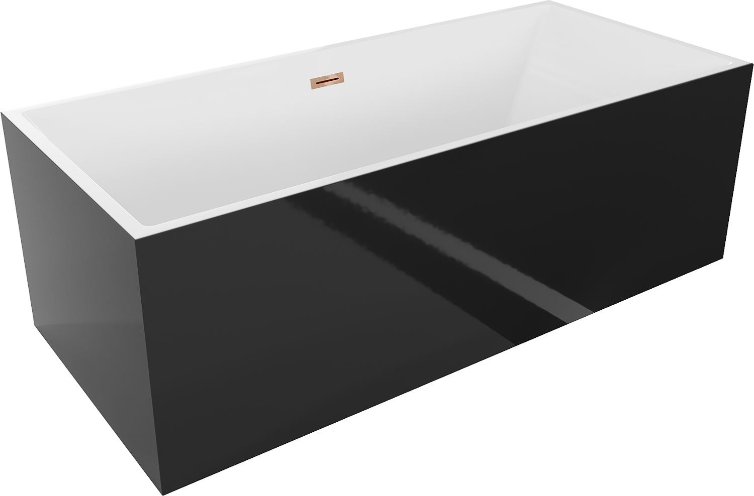 Mexen Vigo baignoire autoportante 178,5 x 80 cm, blanche/noire, trop-plein or rose - 51251788075-60