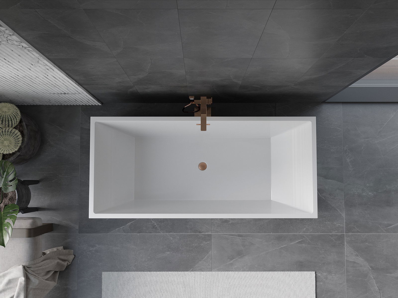 Mexen Vigo baignoire autoportante 178,5 x 80 cm, blanche/noire, trop-plein cuivre brossé - 51251788075-65