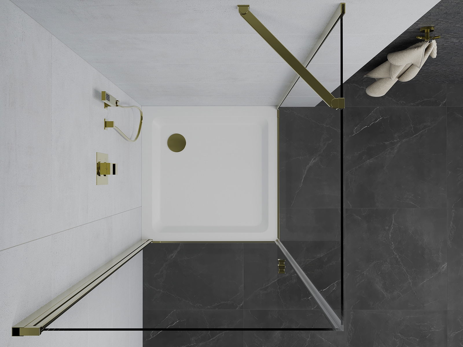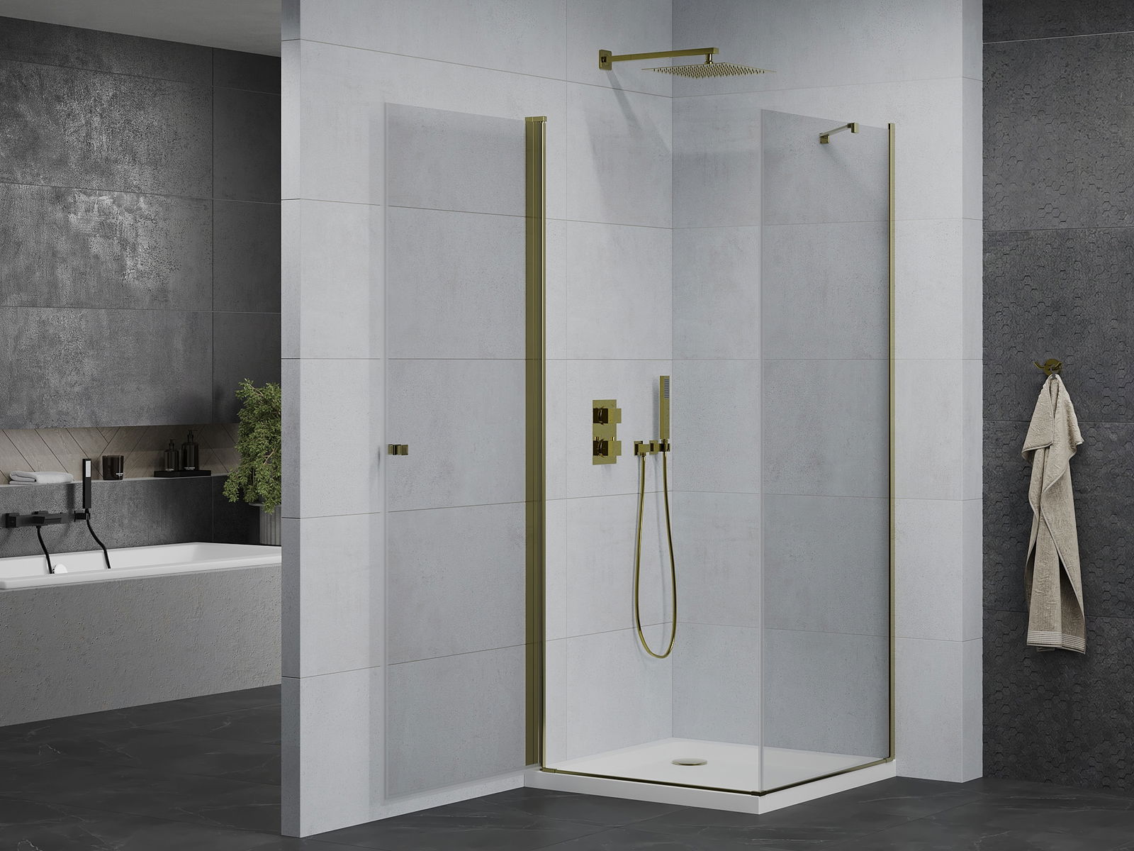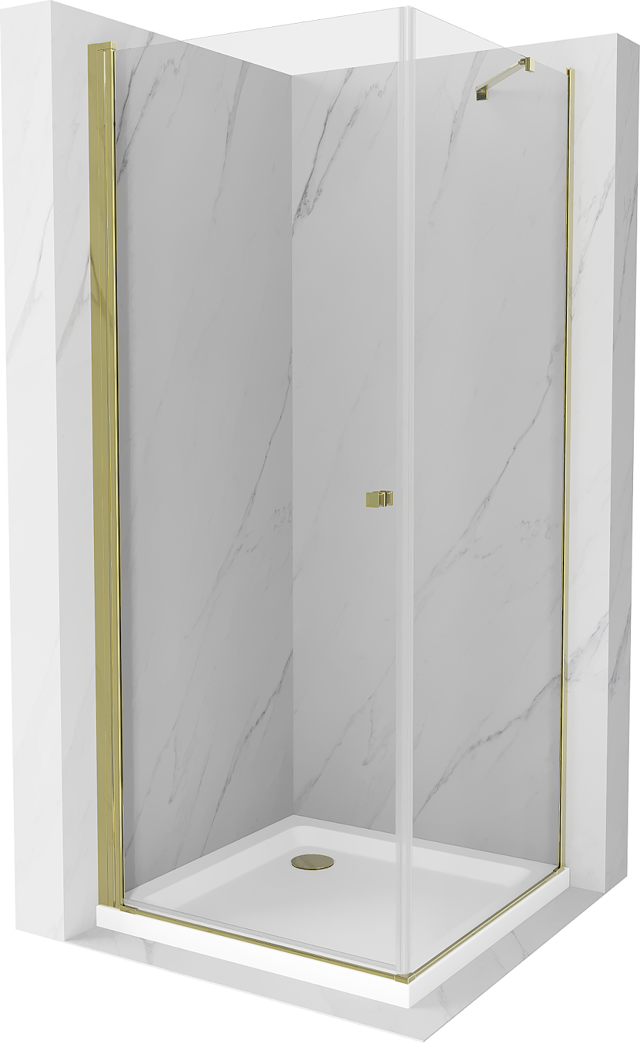 Mexen Pretoria cabine de douche pivotante 70 x 70 cm, transparent, or + receveur plat - 852-070-070-50-00-4010