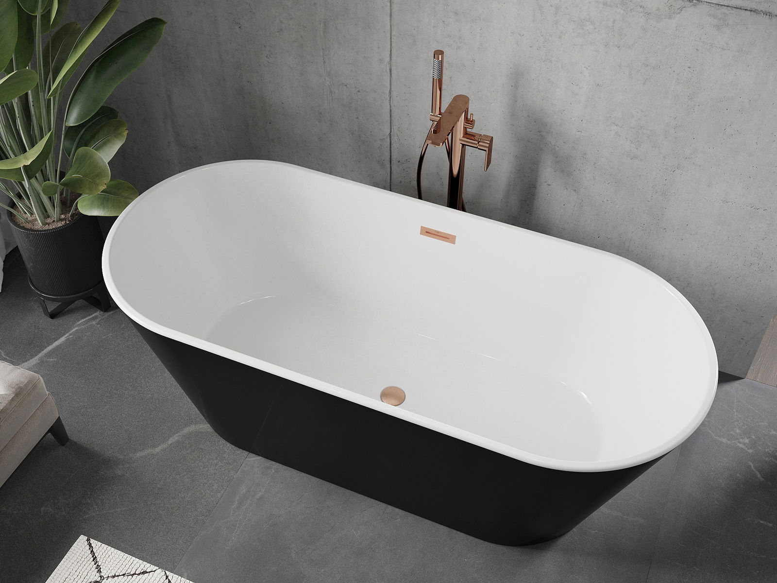 Mexen Flavia baignoire autoportante 150 x 75 cm, blanc/noir, trop-plein cuivre brossé - 54031507575-65