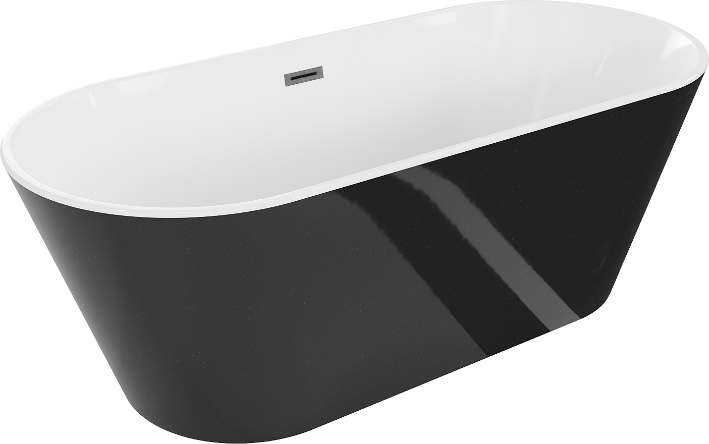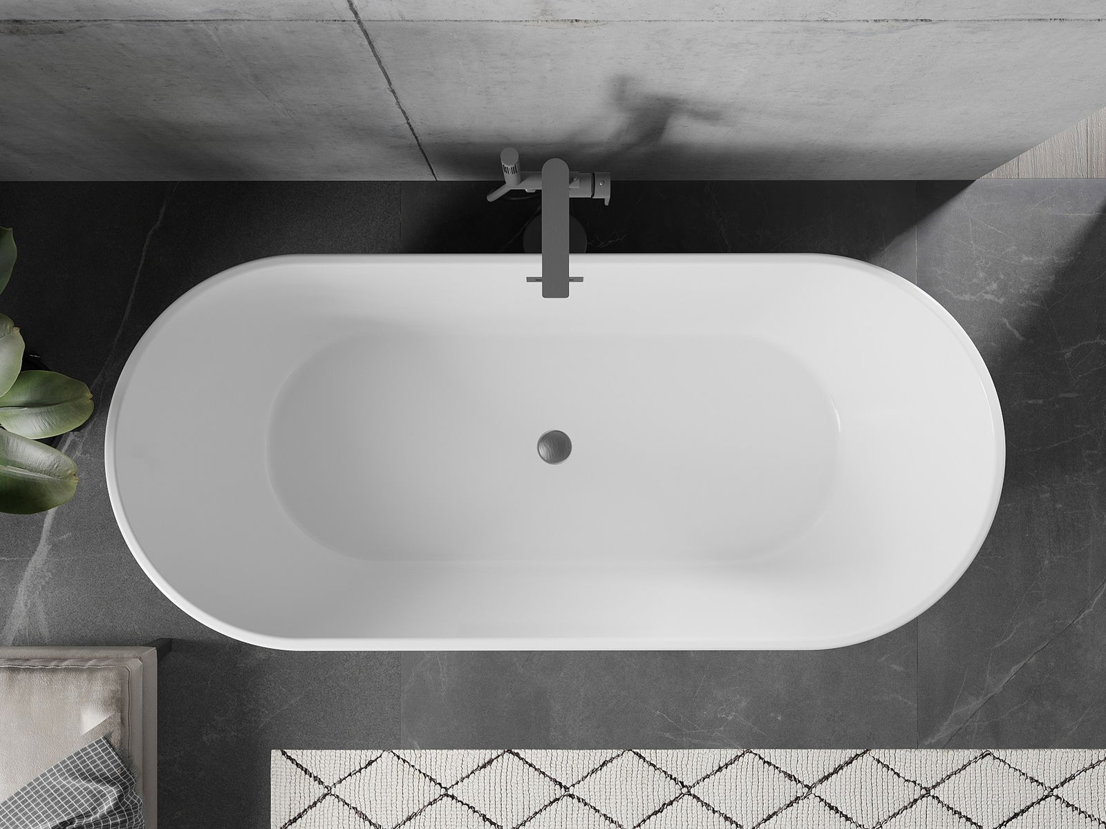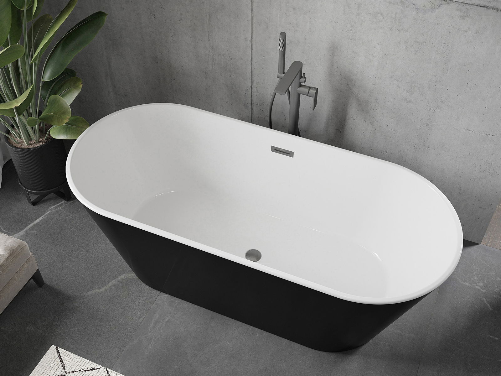 Mexen Flavia baignoire autoportante 160 x 75 cm, blanche/noire, trop-plein gris canon brossé - 54031608075-66