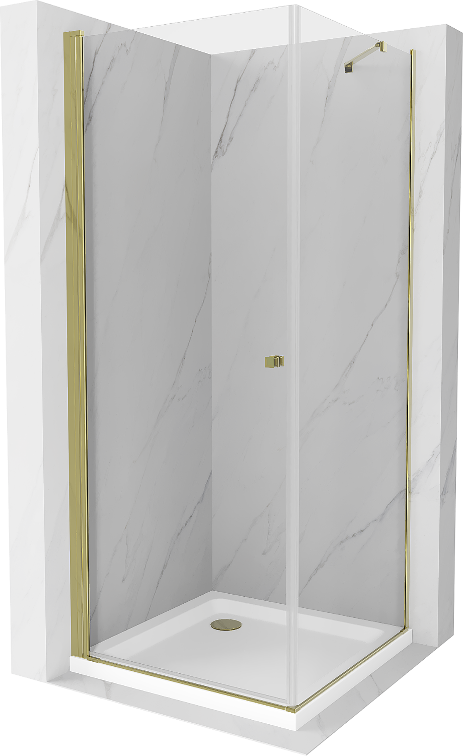 Mexen Pretoria cabine de douche battante 80 x 80 cm, transparent, or + receveur Flat - 852-080-080-50-00-4010